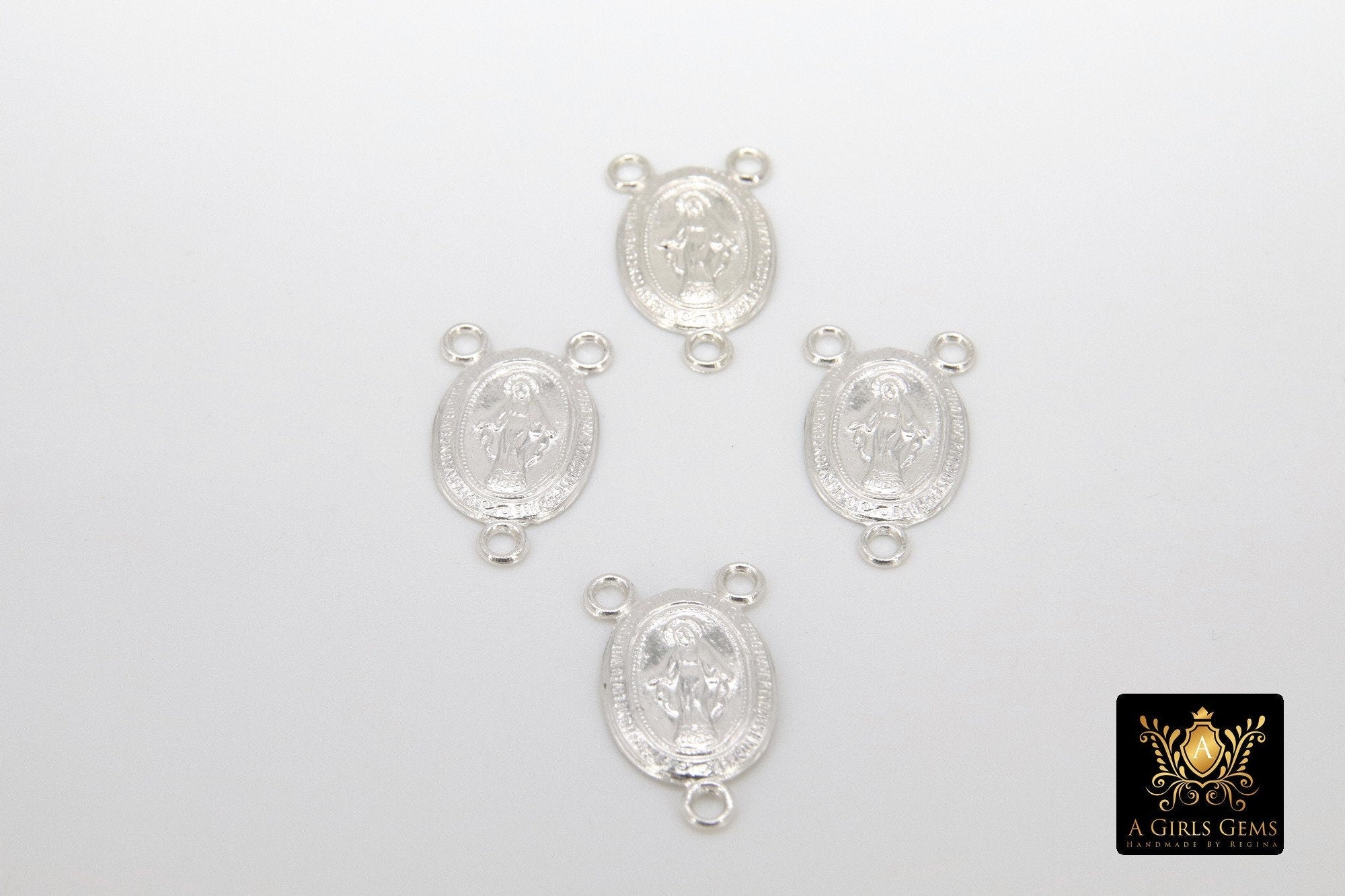 14 K Gold filled or 925 Sterling Silver, Virgin Mary Center 3 loop Connectors, Rosary Necklace Center