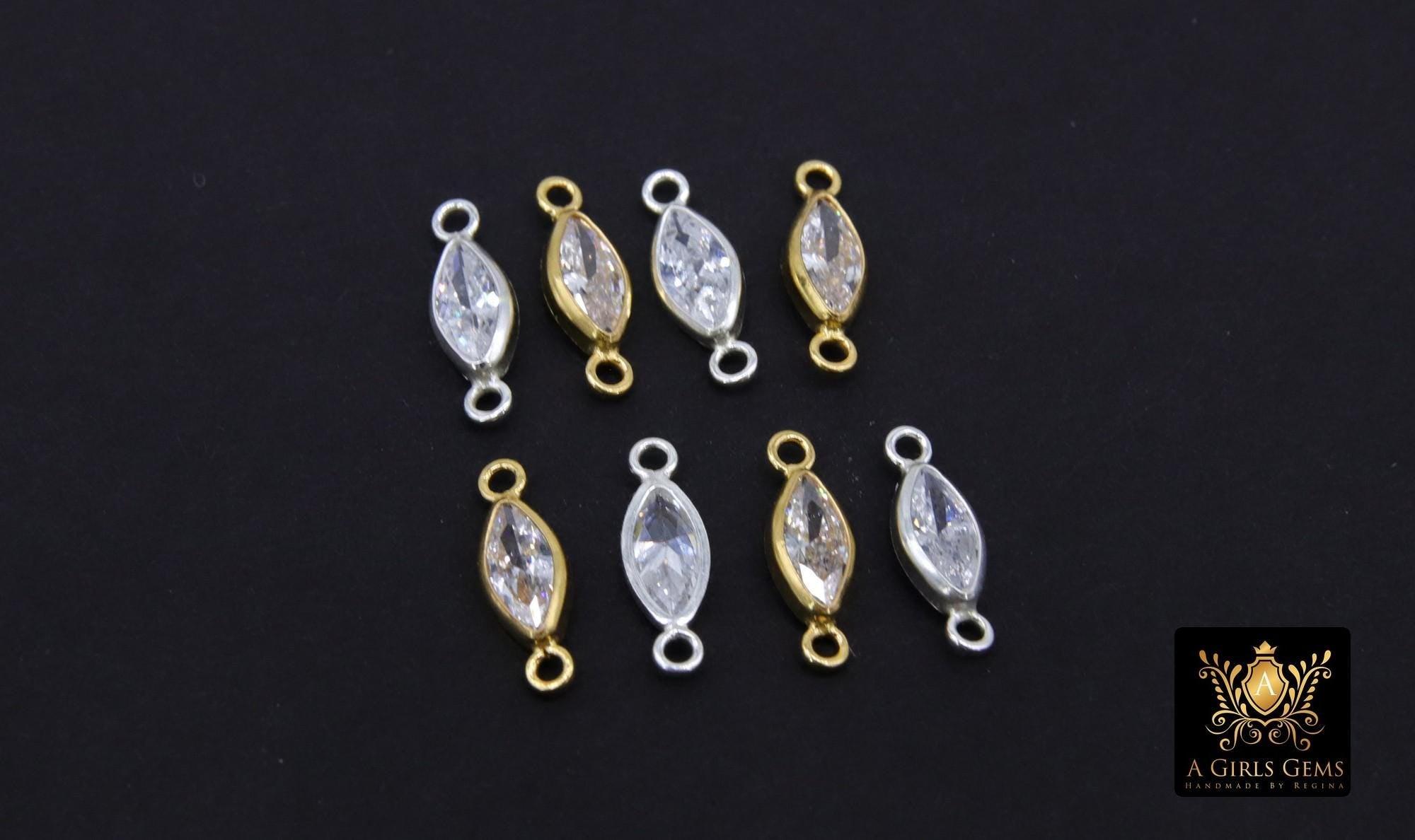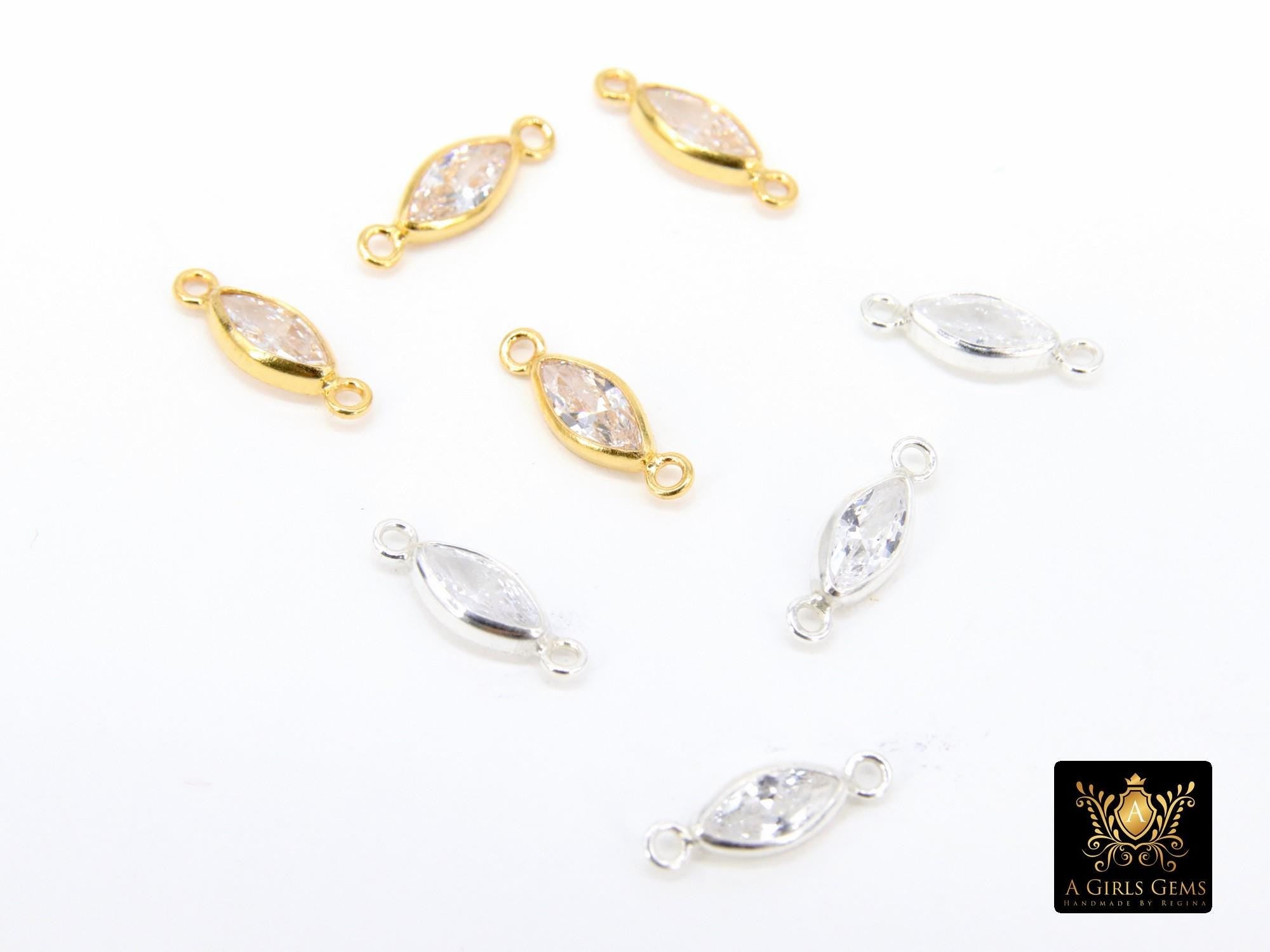 14 K Gold Filled or 925 Sterling Silver, CZ Marquis Oval Shaped Clear Zirconia, Permanent Jewelry Connectors