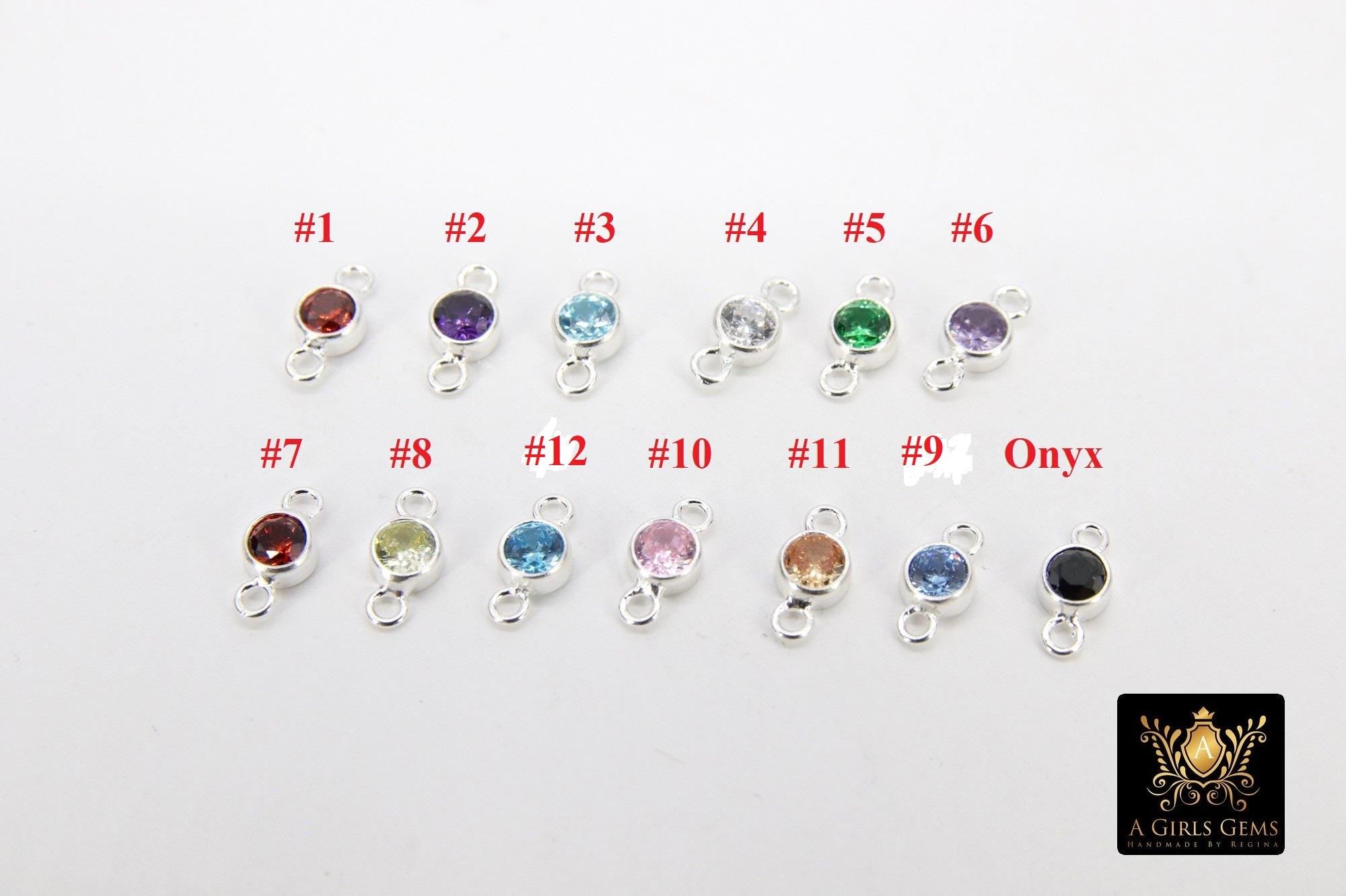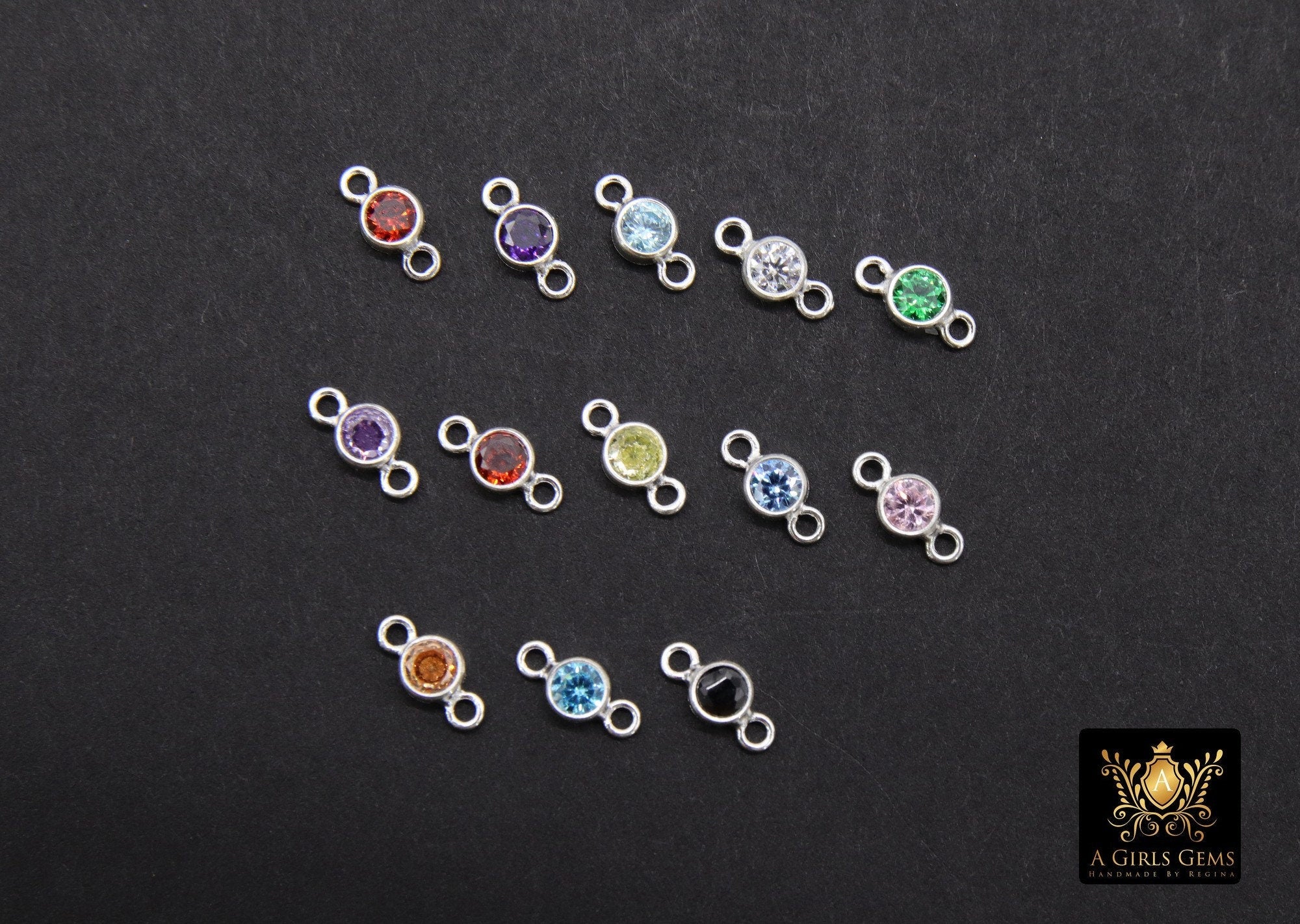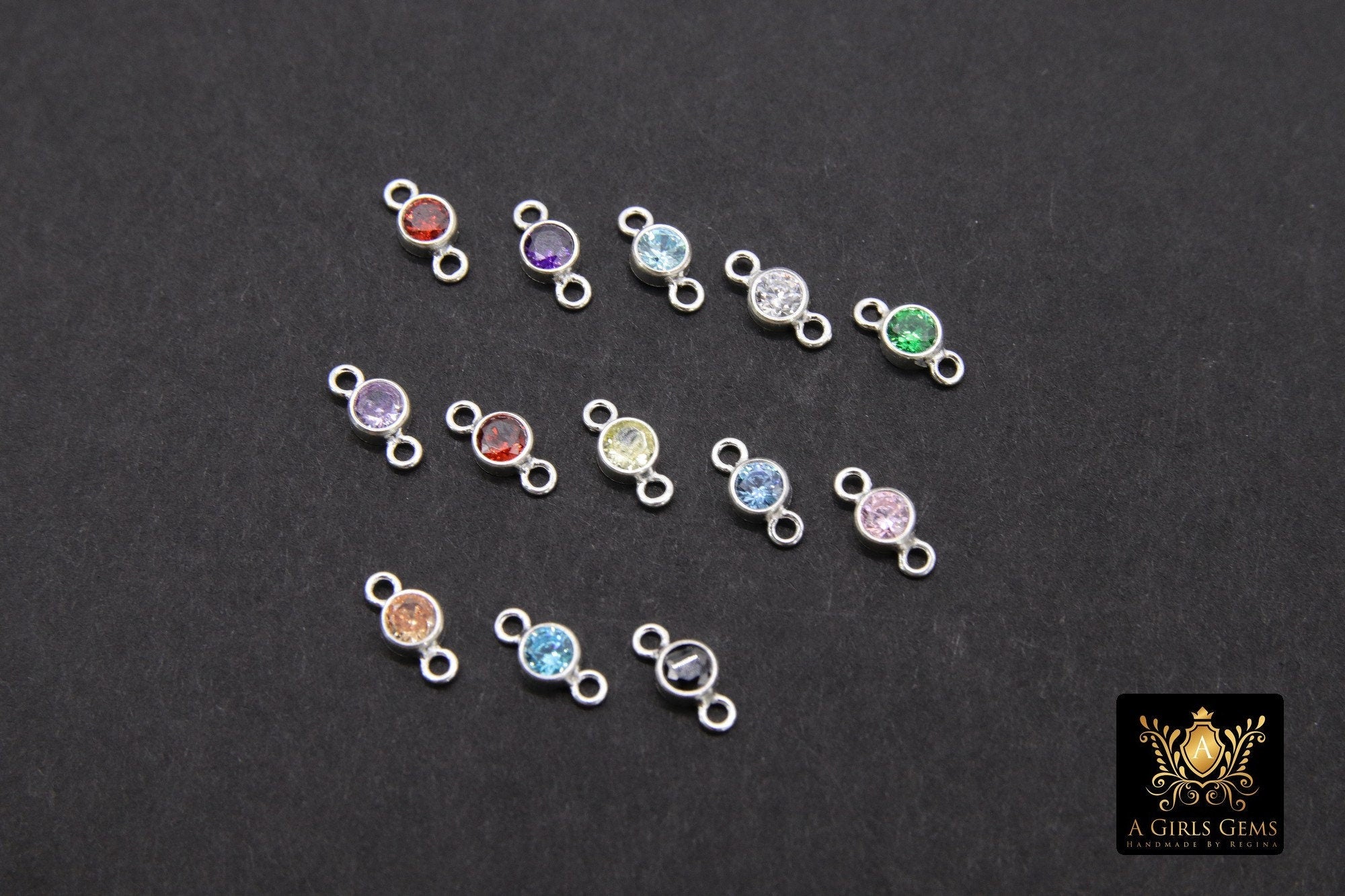 925 Sterling Silver 3 mm Birthstone Solitaire Connectors
