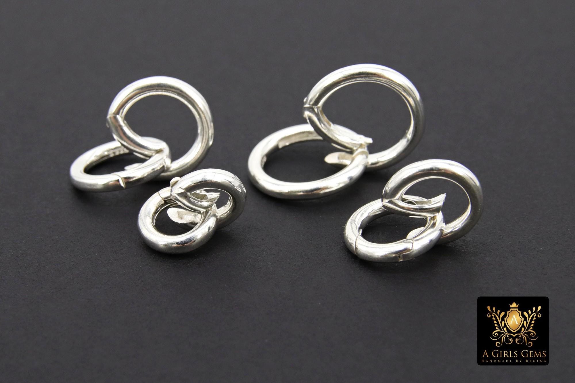 925 Sterling Silver Round Spring Clasp, 10 mm, 12 mm, 14 mm, 16 mm Silver Round Shaped Connector Clip Findings, Jewelry Push Clasp Findings