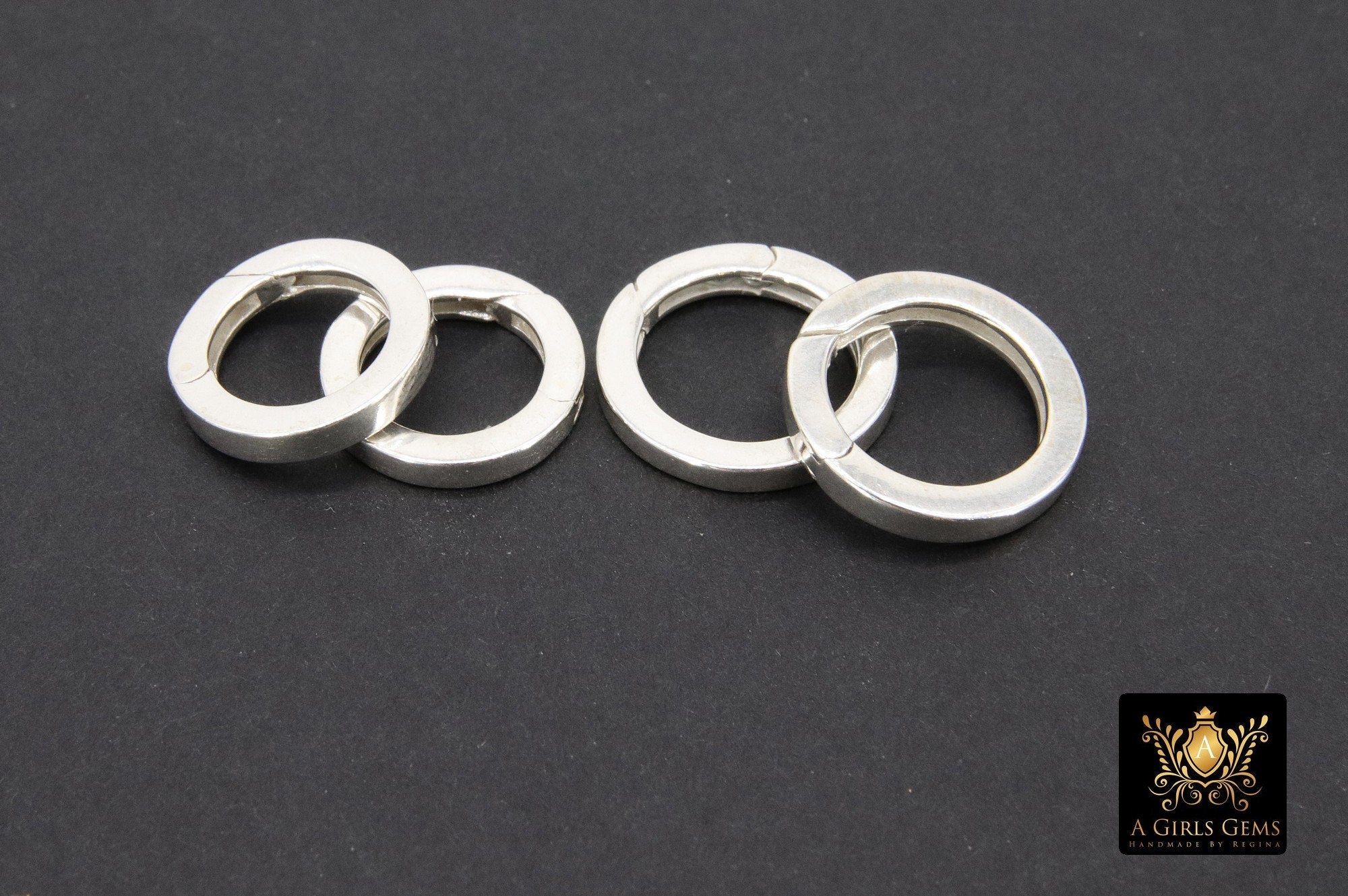 925 Sterling Silver Round Spring Clasp, Round Shape Jewelry Push Clasps with loop or without