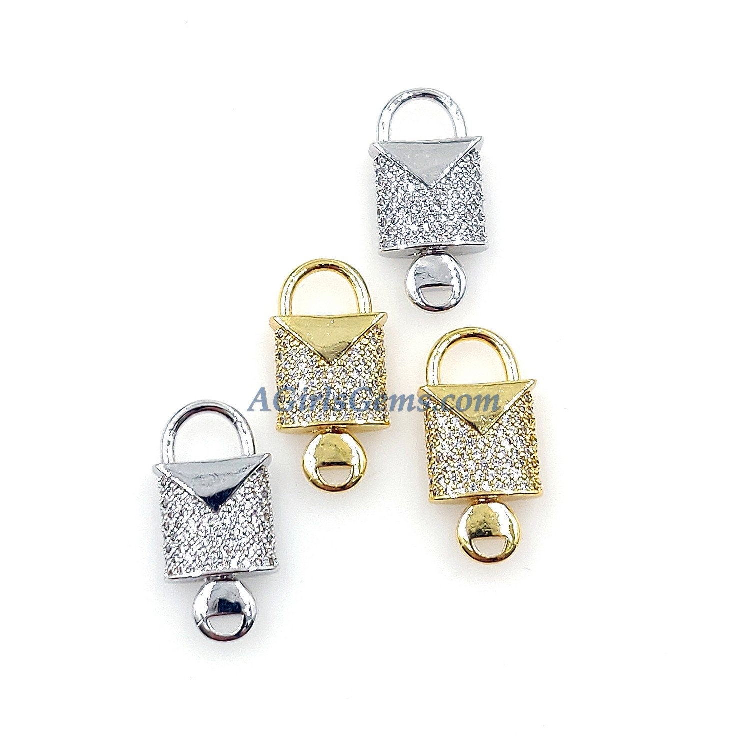 CZ Micro Pave Lock and Key Connectors, 18 k Gold/Silver Plated 11 x 24 mm Lock Key Charms DIY Minimalist Necklace/Bracelet/Earrings Findings