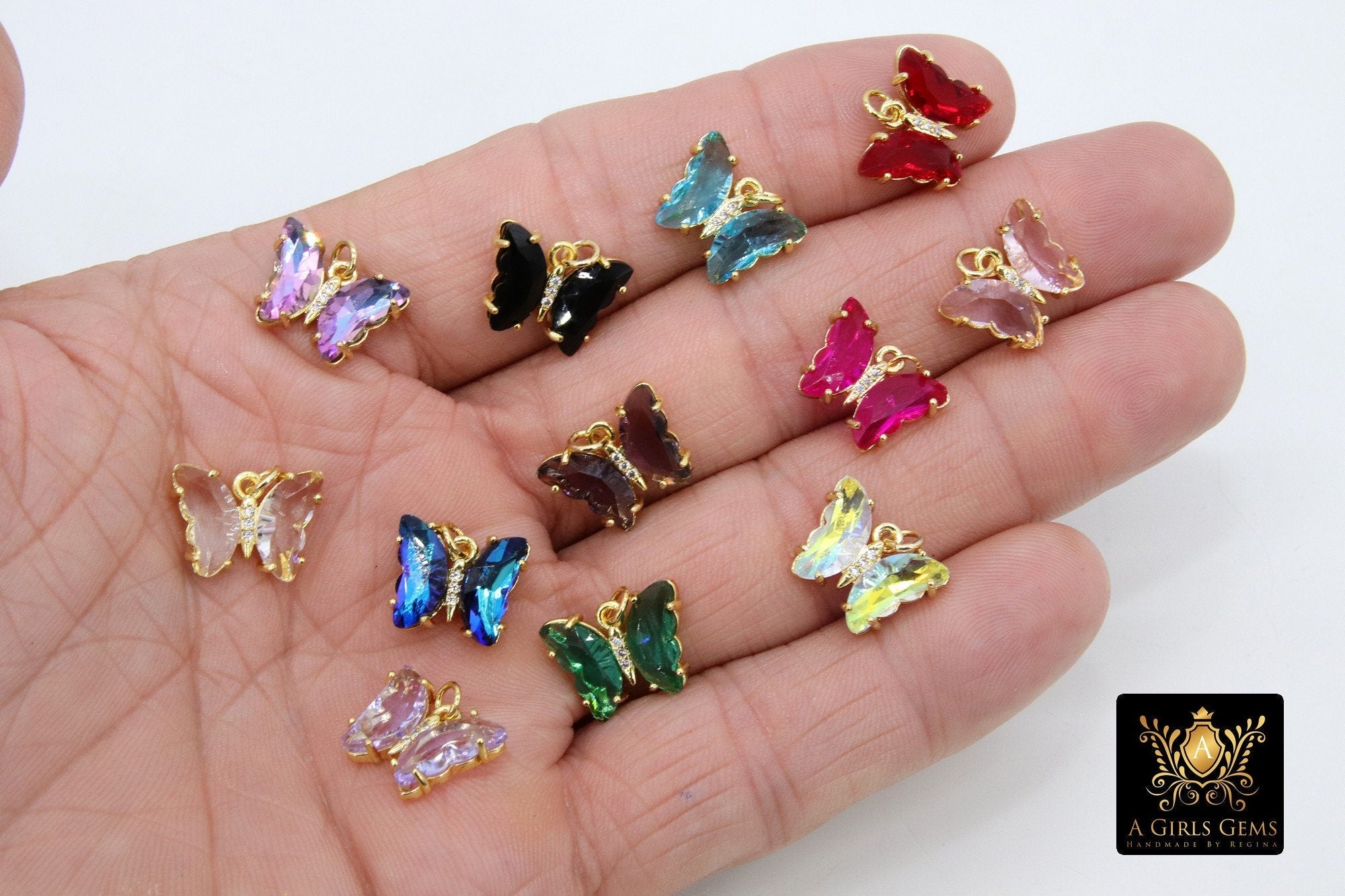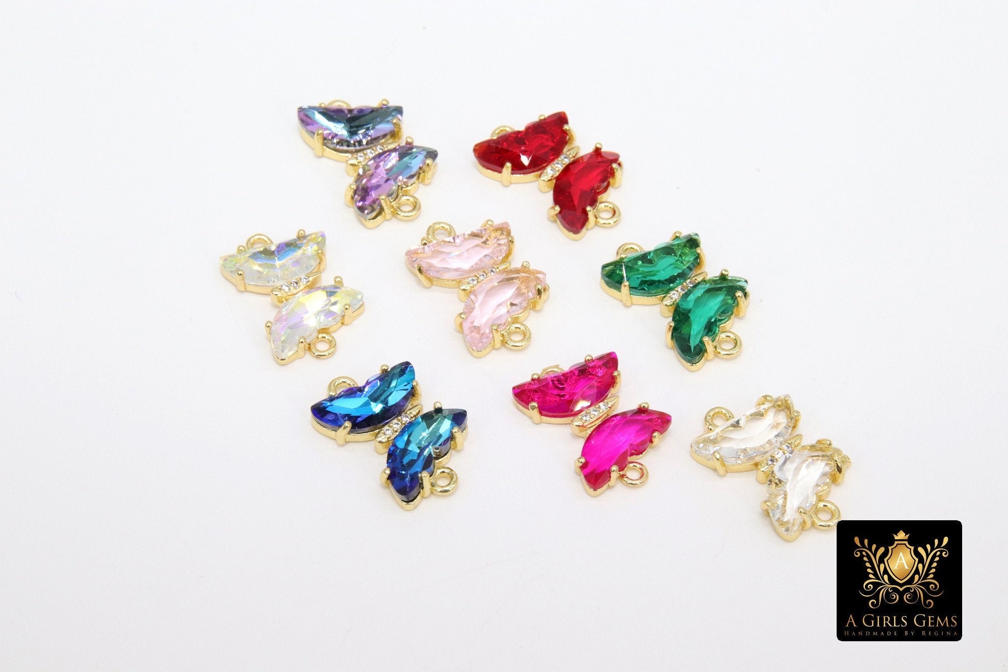 Gold CZ Butterfly Connectors, 12 mm Cubic Zirconia Small Crystal Butterflies #2670, High Quality Huggie Charms in 13 Colors