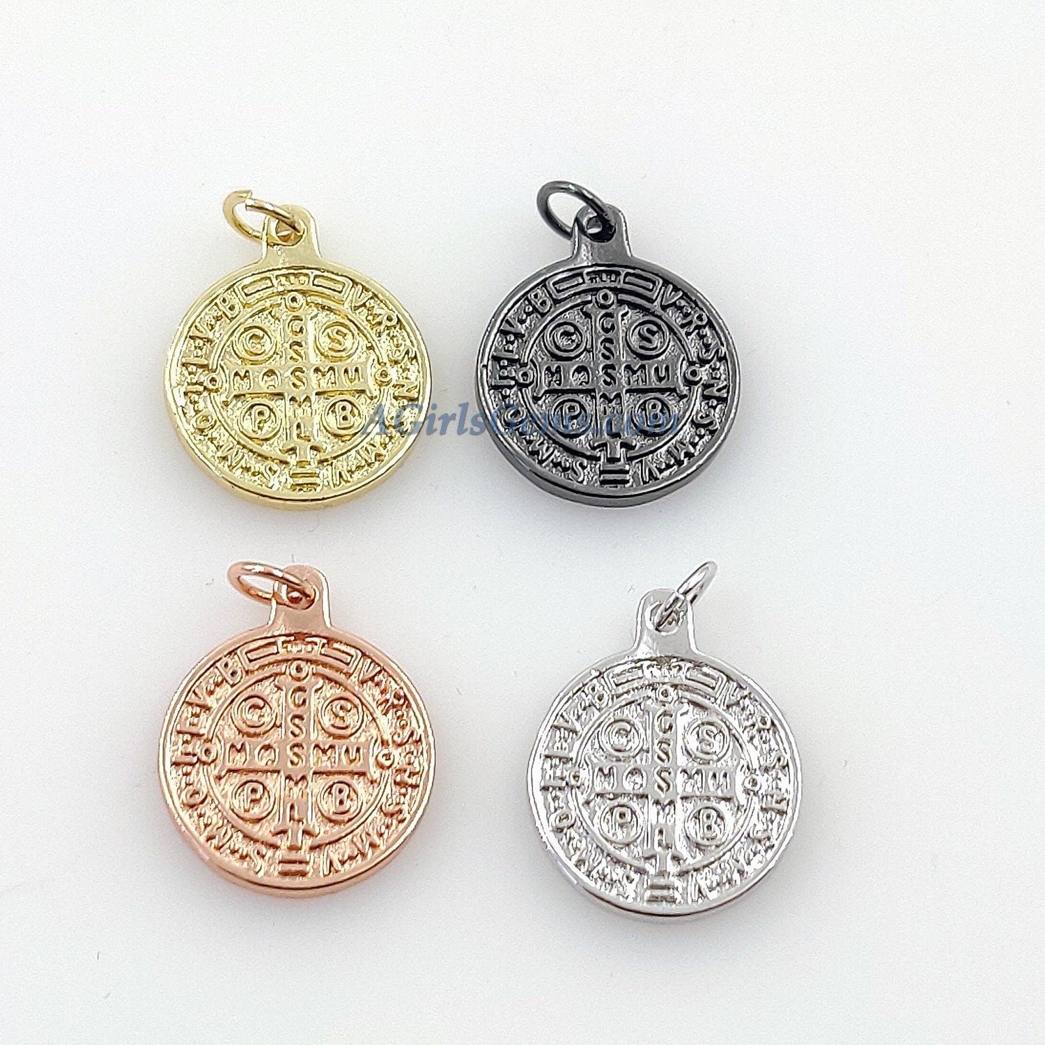 St. Benedict Medal Connectors, 3 Pcs Cross Rosary Centers, Rose/Gold/Silver/Black Plated Religious Bracelet/Necklace Cross Links; 15 x 21 mm