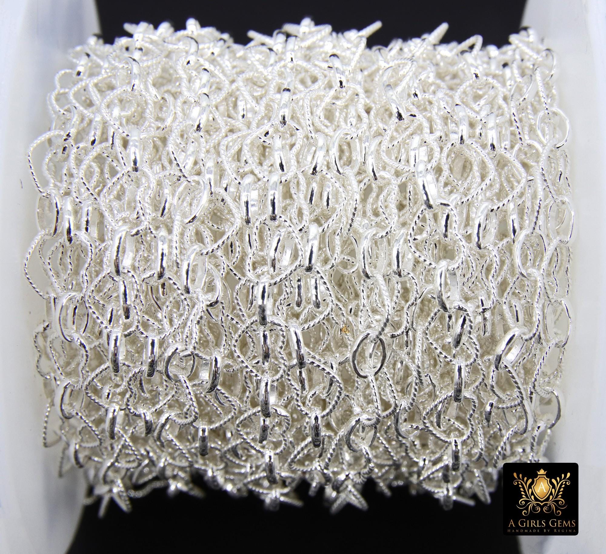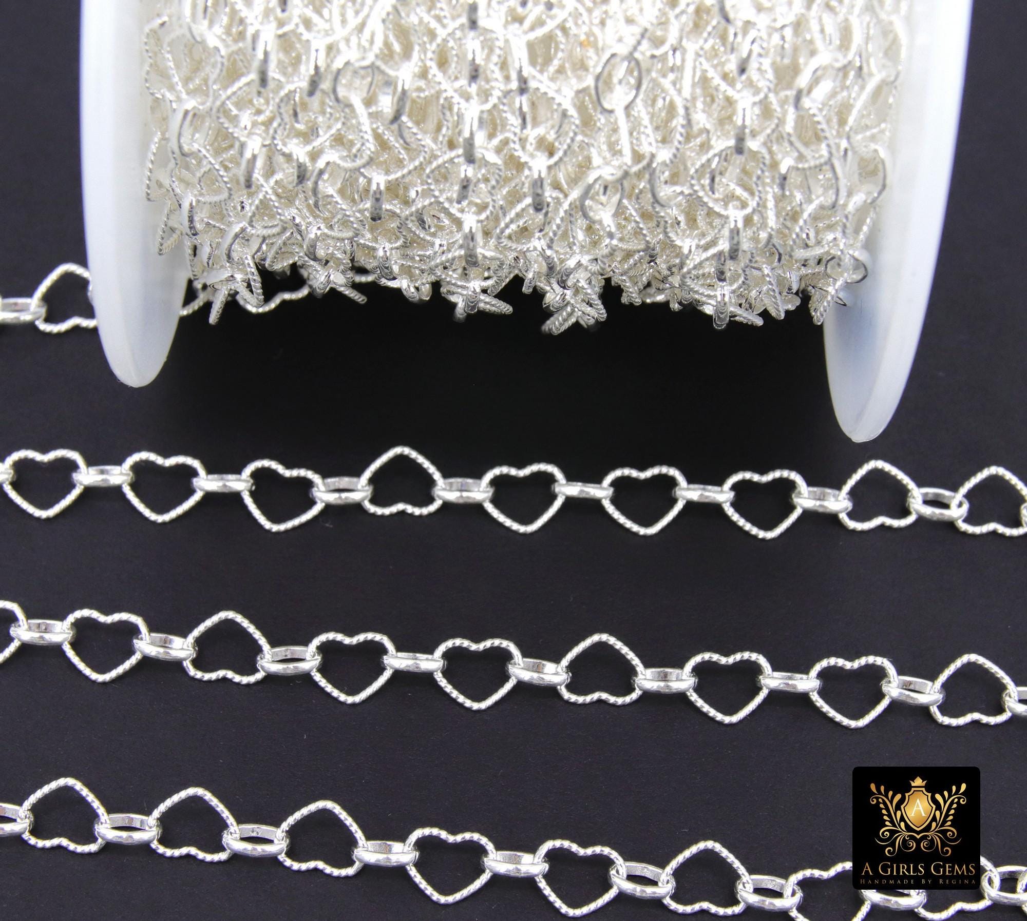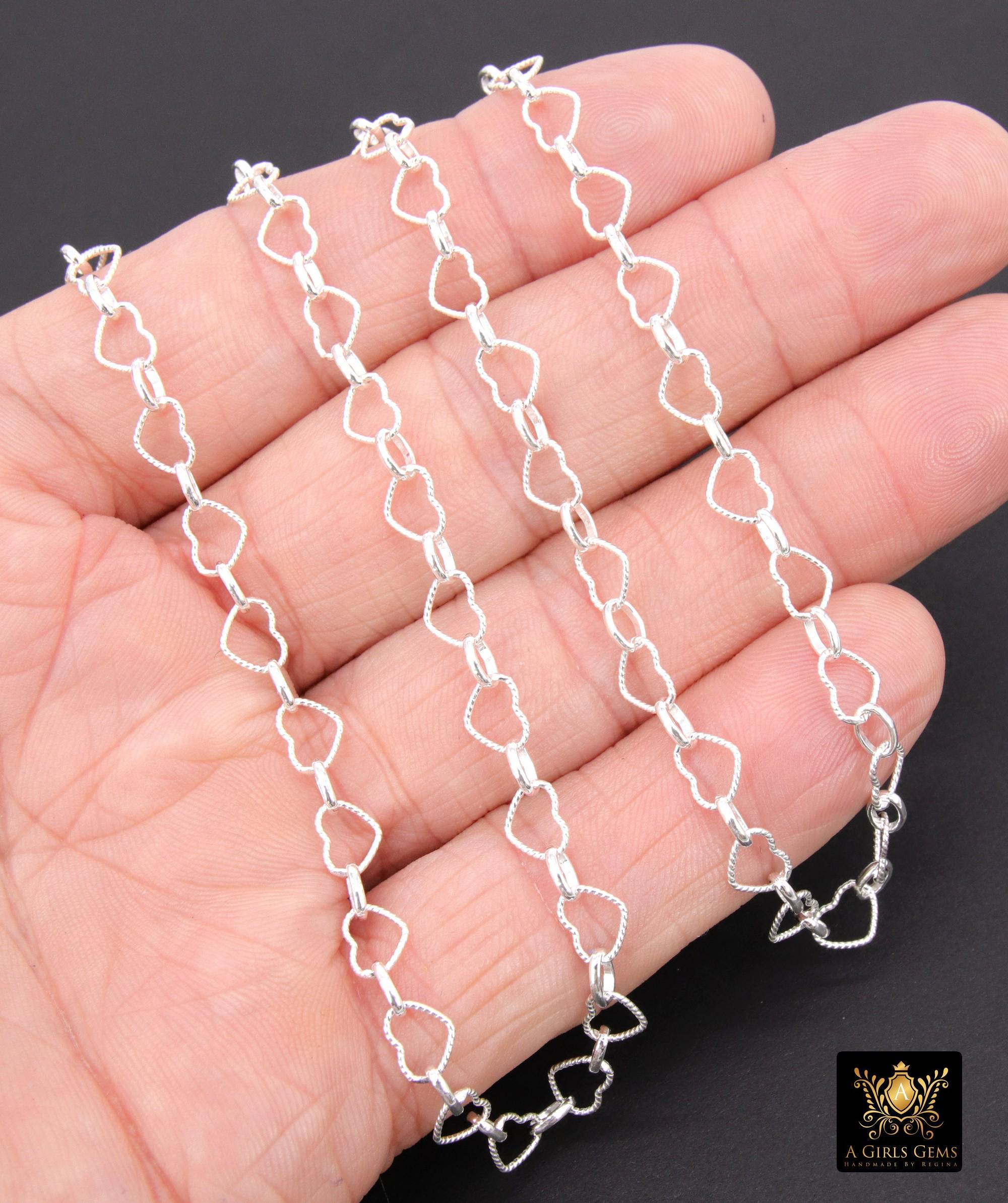 925 Sterling Silver Heart Chain, 6 mm Silver Hammered Heart Shaped Chain CH #884, Designer Jewelry Chain
