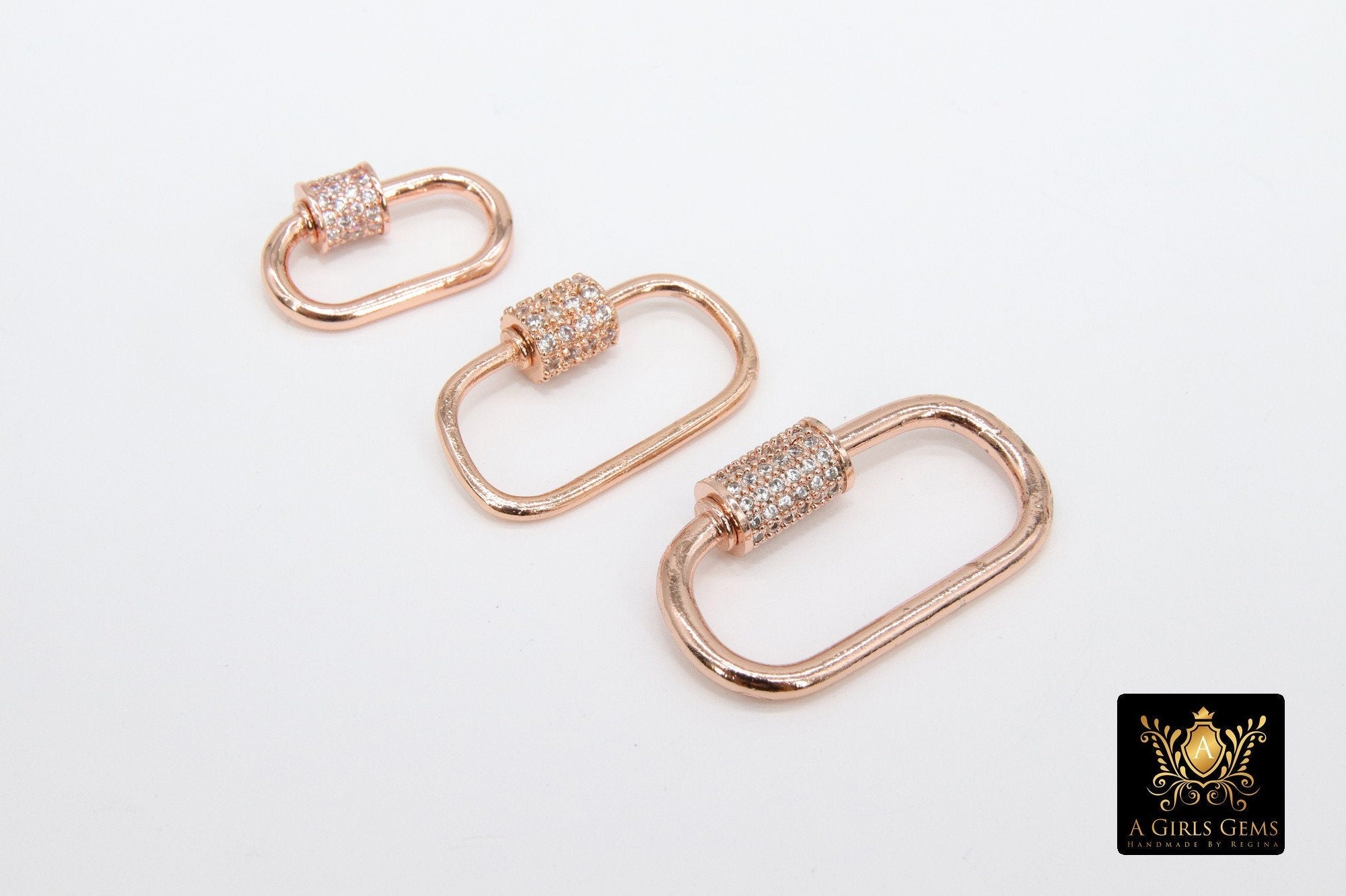 Gold Carabiner Screw Lock, CZ Oval Clasps in Silver Bracelet Findings #2302, Small