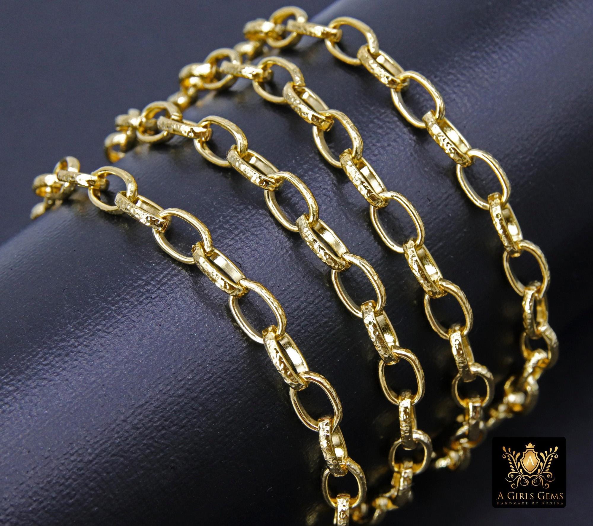 Gold Stainless Steel Oval Rolo Chain, 8 mm Textured Paperclip Chains CH #140, 304L Unfinished Thick Oval Rolo