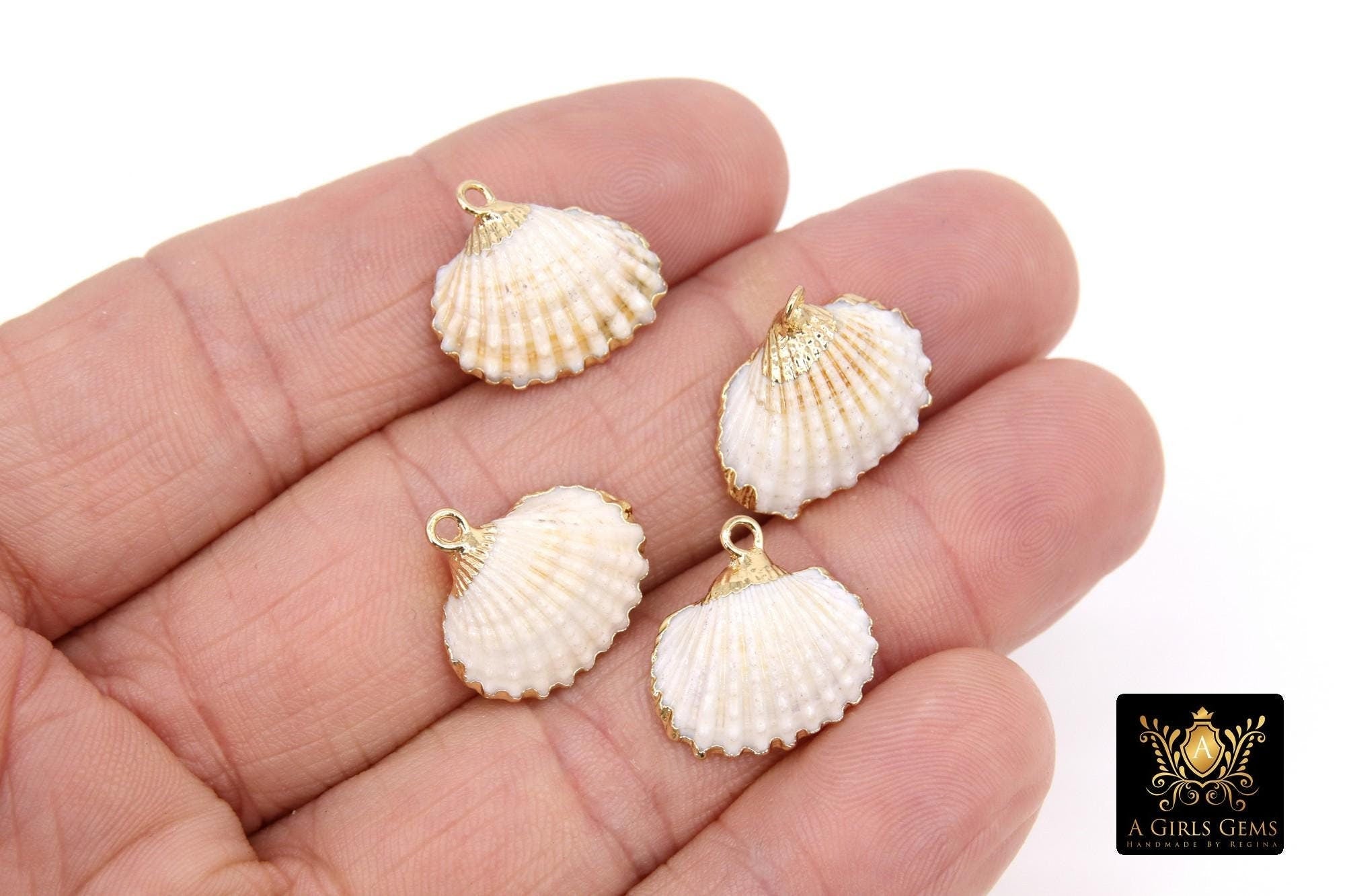 Small White Scallop Seashell, Gold Edged Seashell Pendants, Beach Scallop Natural Shell Pendants, Gold Dipped Jewelry Boho Style Supply Bulk