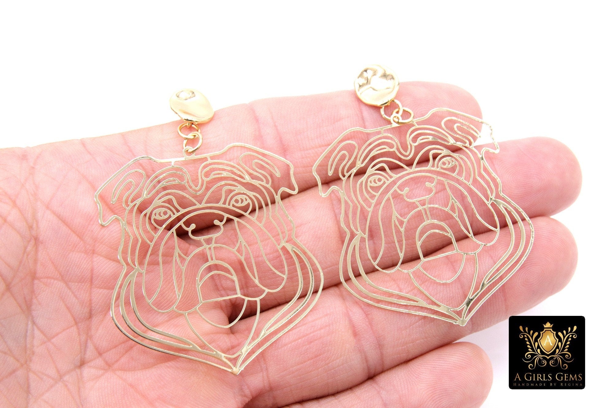 Gold Bulldog Earring, Round Wavy Stud Gold Georgia Bulldogs AG# 2405, Animal Head Charms