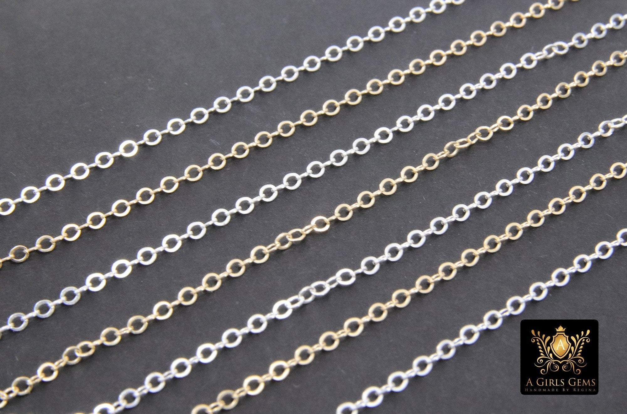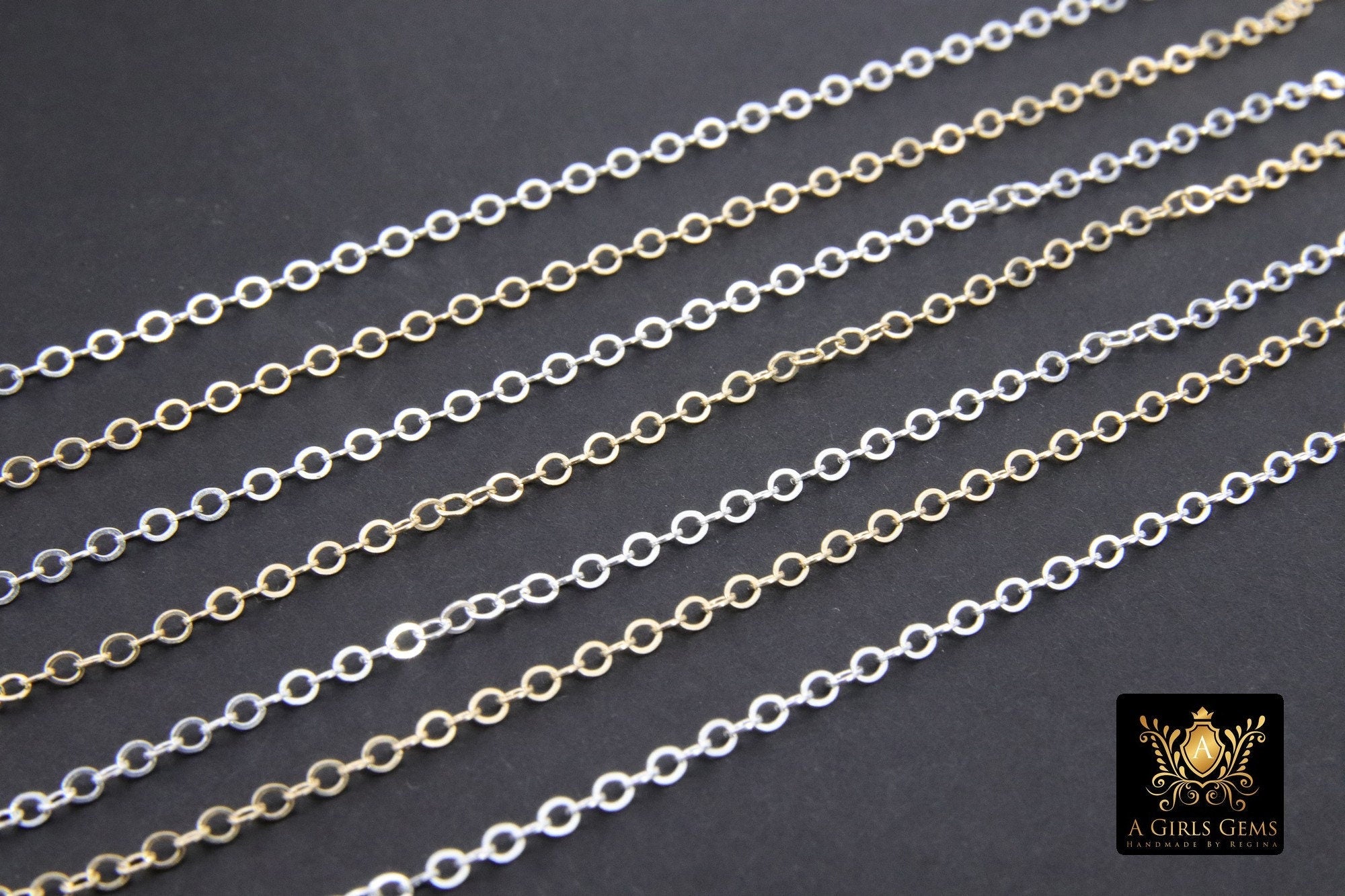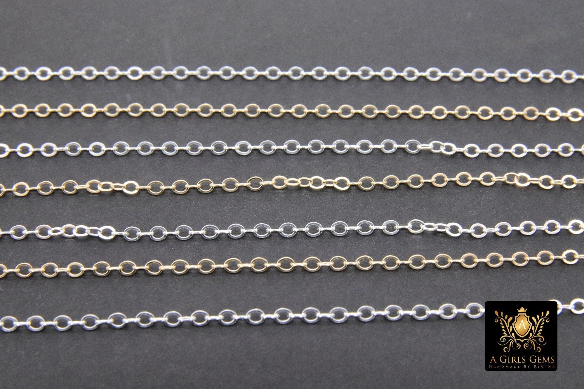 14 K Gold Filled Hammered Cable Chains, 2.1 mm 925 Sterling Sliver CH# 837, Dainty Chain CH# 729