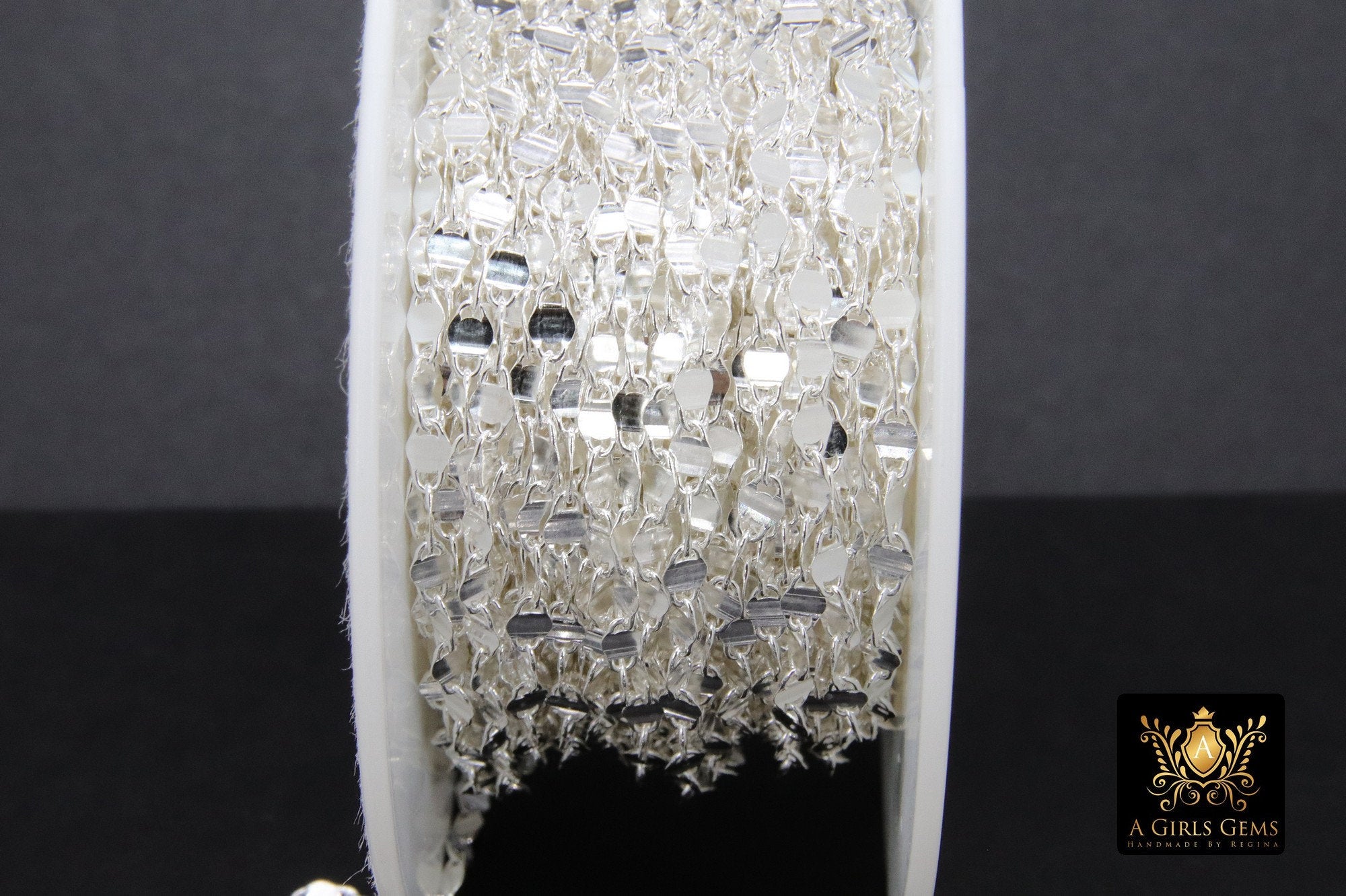 925 Sterling Silver Moroccan Chain, 4 mm Sequin Dapped Chains CH #804, Dainty Silver Beaded Flat Jewelry Chain