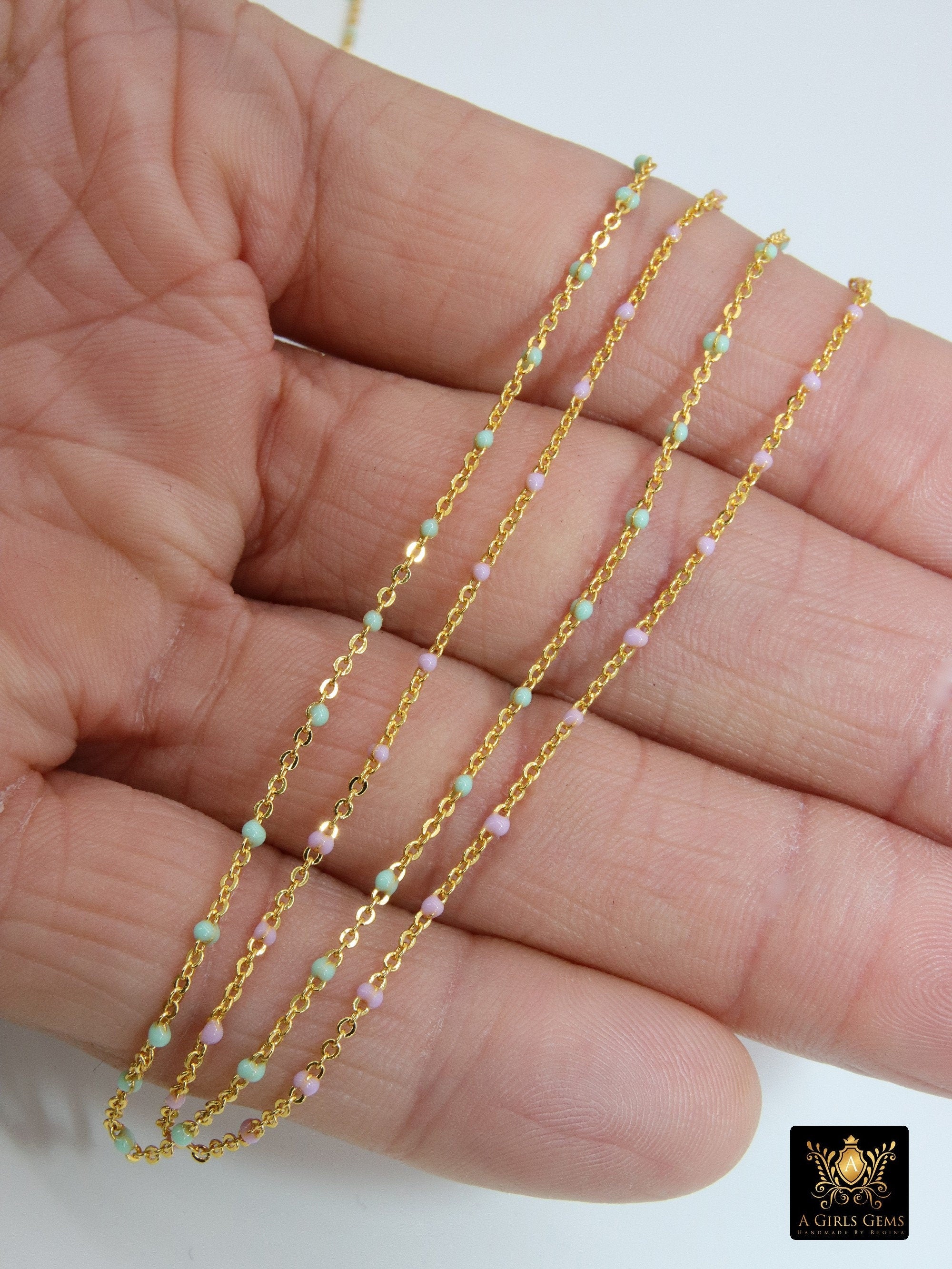 Dainty Gold Beaded Satellite Enamel Chain, Soft Pink Jewelry Chain CH #619, Soft Mint Green Beaded Chain