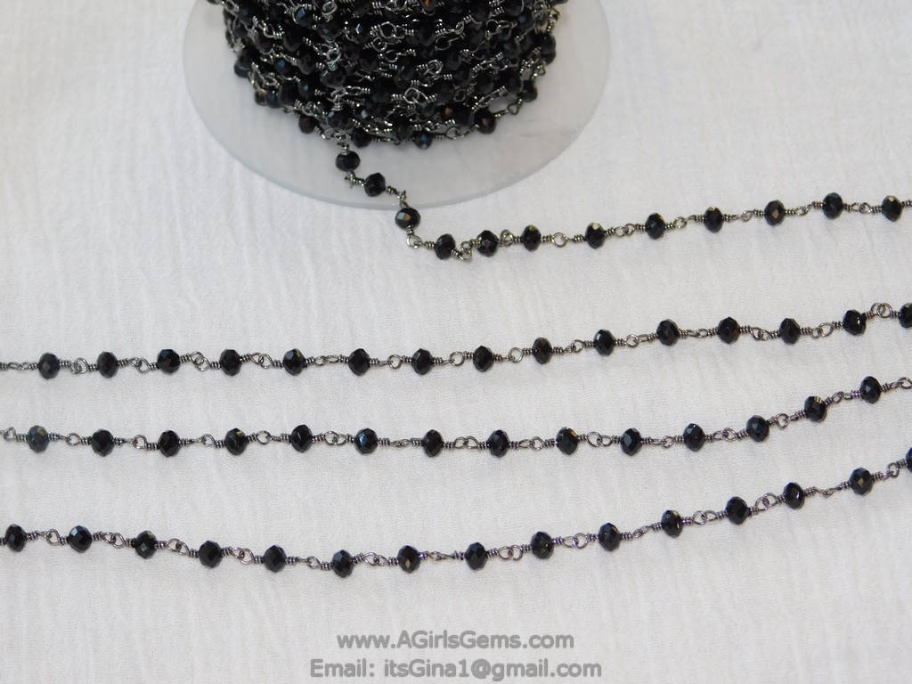 Gunmetal Black Rosary Chain, 4 mm Black Wire Wrapped Bead Chains CH #345, 3 5 10 feet Roll Bulk Plated Rosary Chain Beaded Rosary