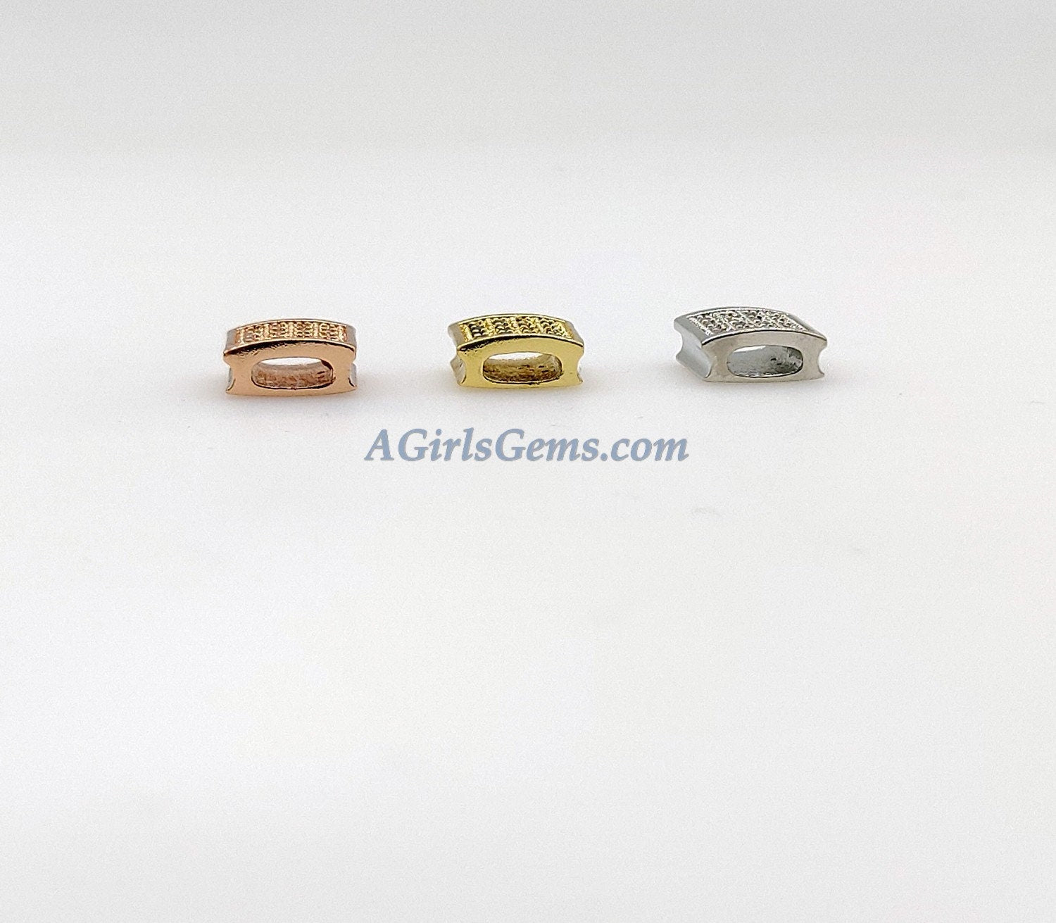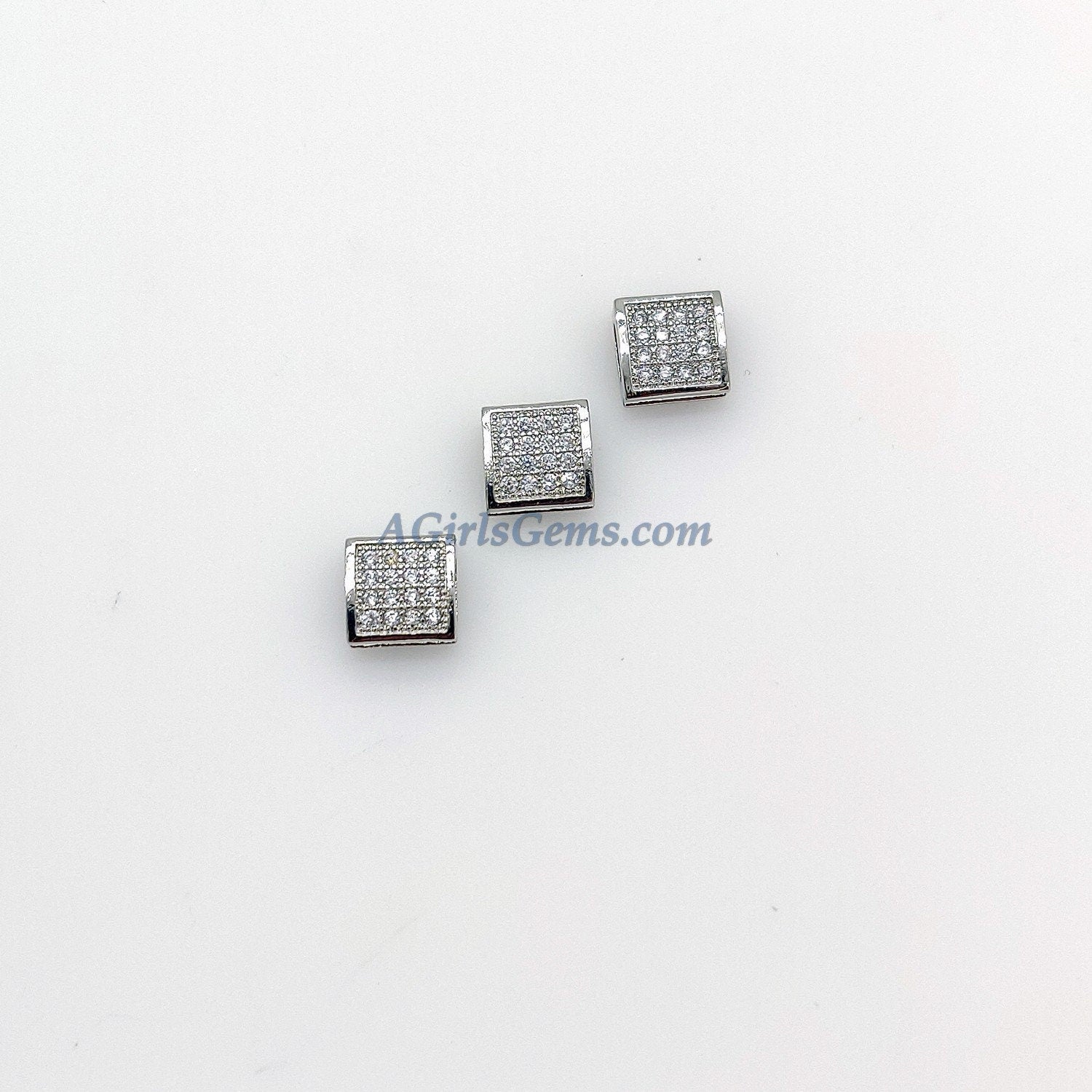CZ Micro Pave Bead Cube Beads, Flat Square Beads, Rose Gold/Gold/Silver Plated Spacer Beads, Leather/Ribbon/Strap Bead Jewelry Supplies