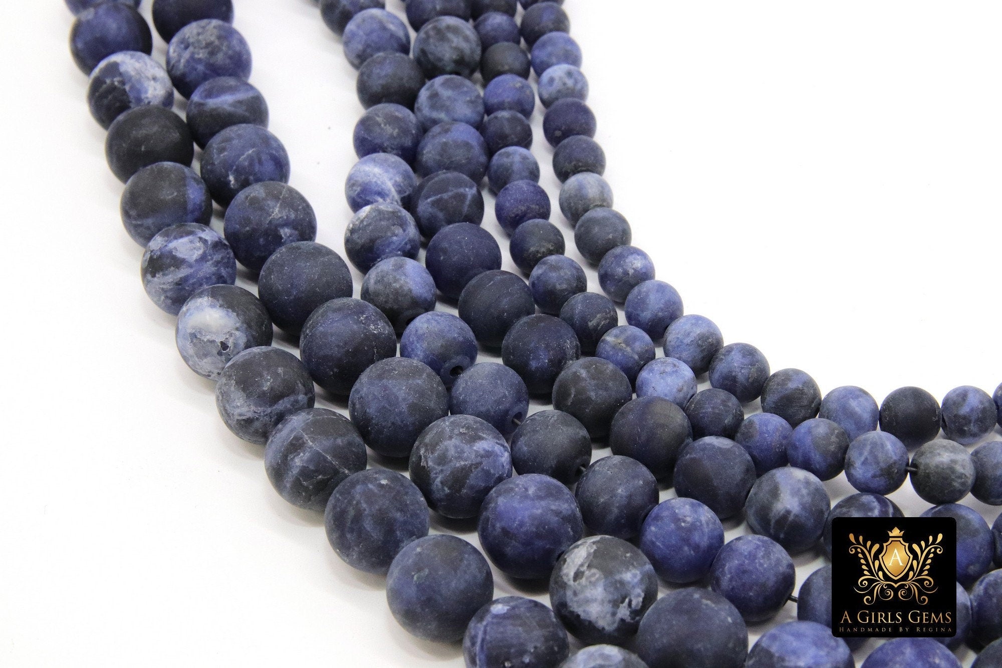 Matte Sodalite Blue Beads, Frosted Navy and Black Round Beads BS# 129, size 6 mm 8mm 10 mm 15 in FULL Strands