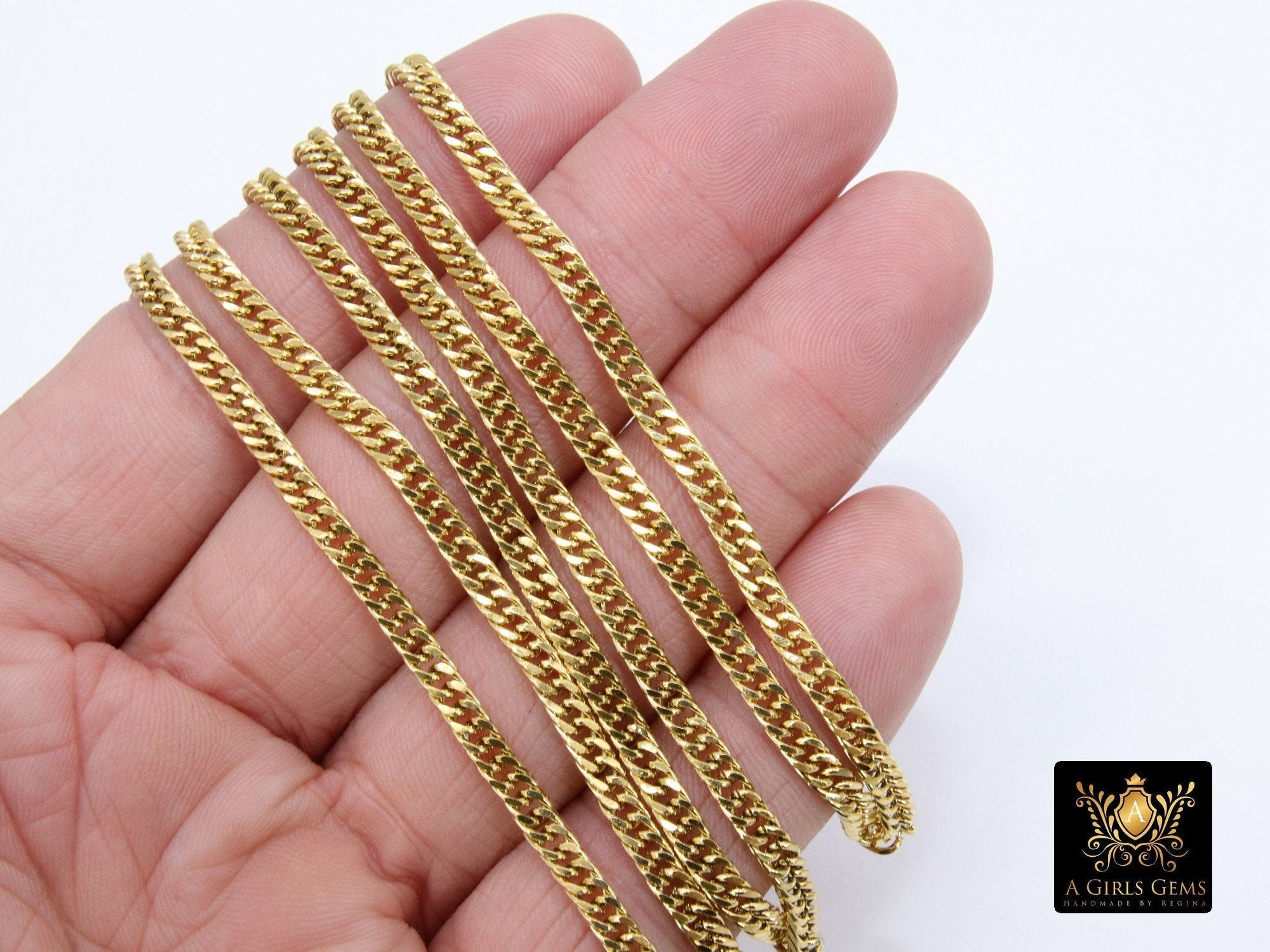Gold Stainless Steel Chains are 5.5 x 3.9 mm. We also carry this chain in the 7 mm for gold or silver.