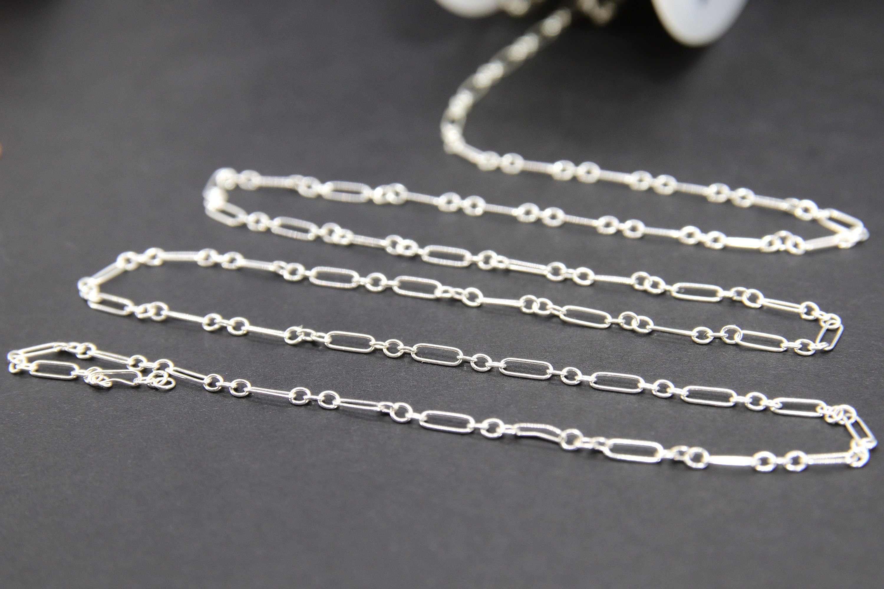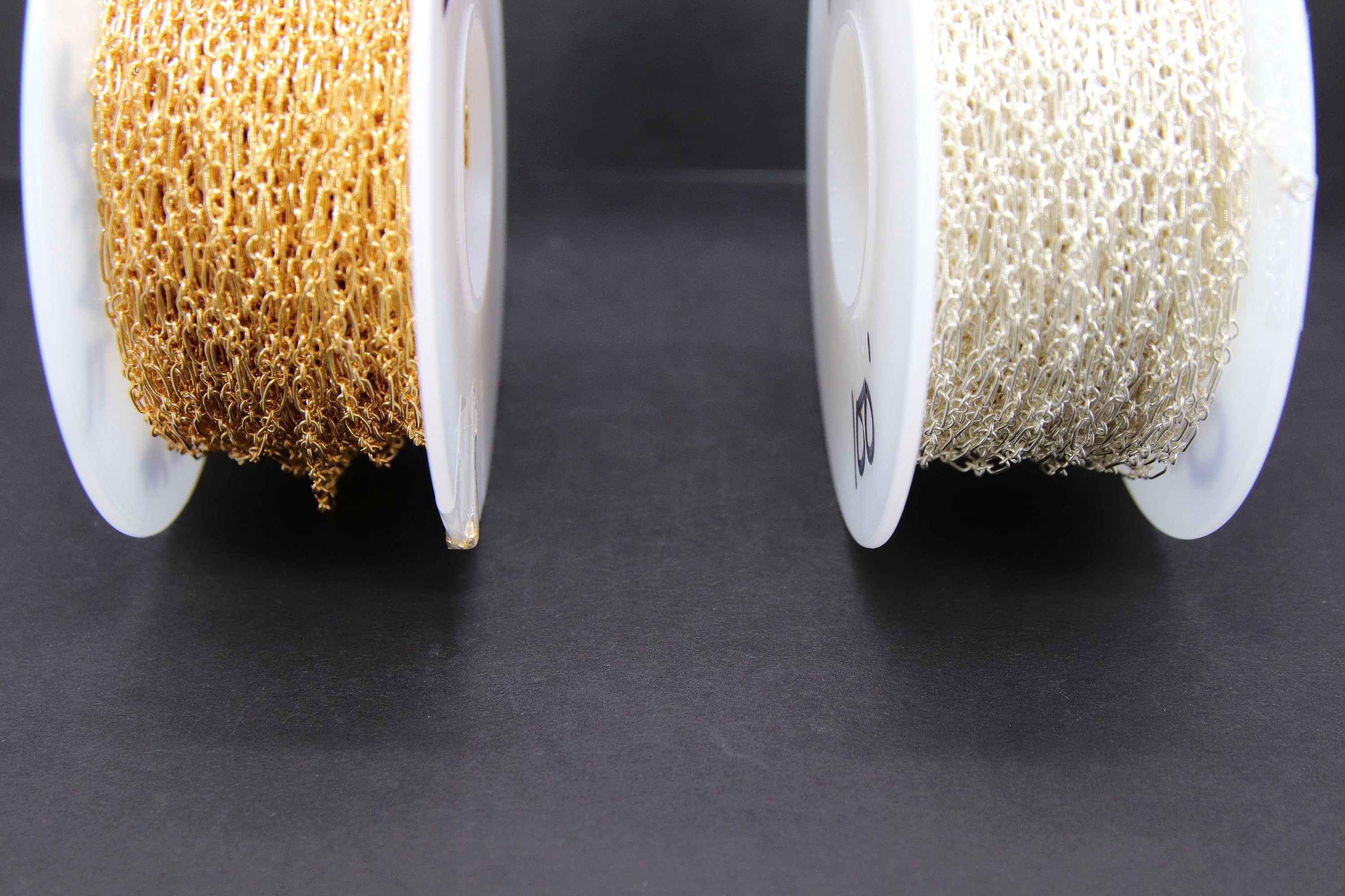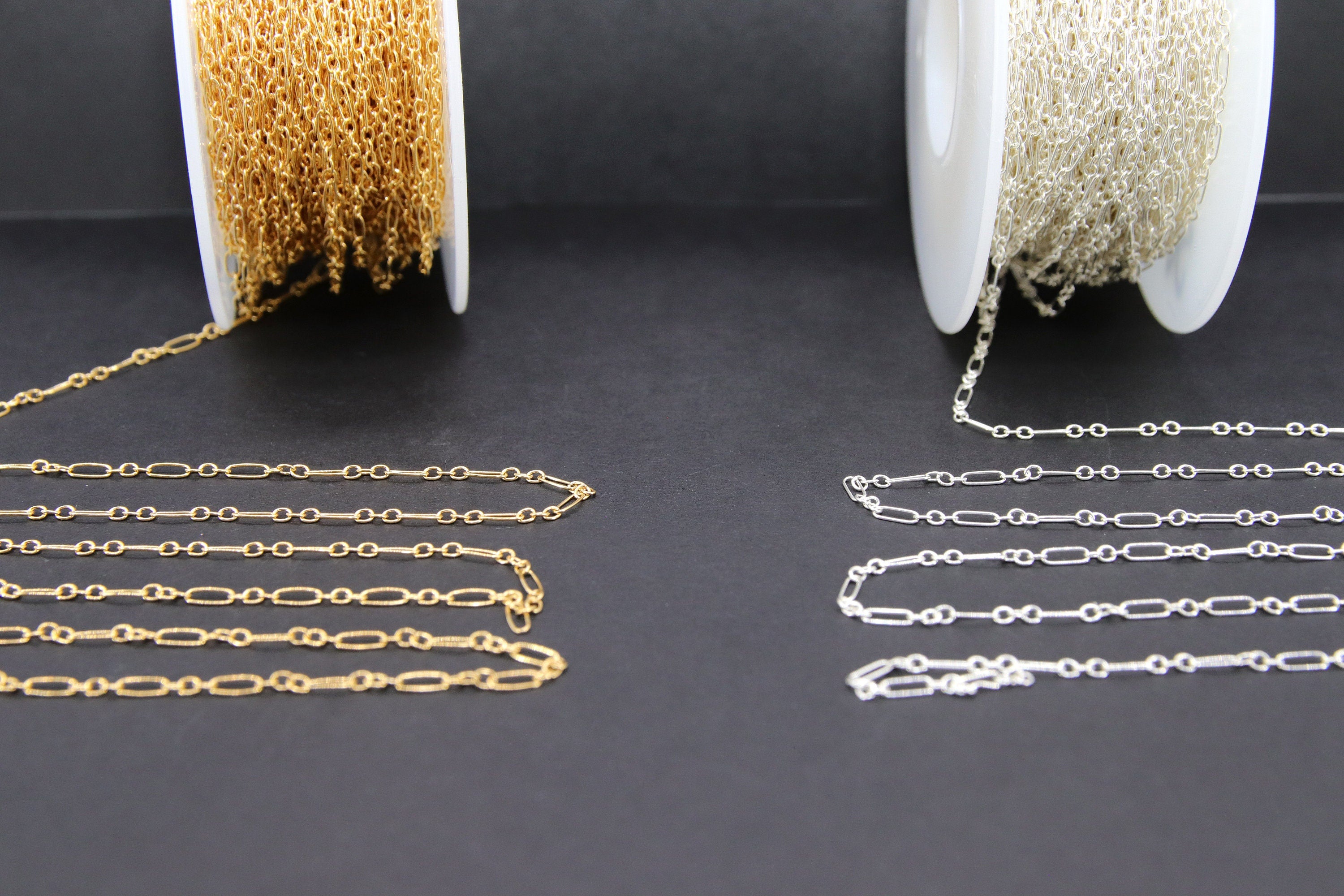 Notes Regarding Chains: All of our chains are cut in a continuous chain unless it is the end of a roll. We do not cut 10 feet in 1 foot sections. Any 925 Sterling Silver or Silver plated chains will tarnish. We suggest keeping your chains in a sealed jewelry bag to help prevent this. I'm sorry chains are not eligible for return or exchange. We recommend you try a foot sample before large purchases. Stainless steel chains come in gold or silver and are known for their non tarnishing properties. We don't control the colors, where gold may be applied on tight weave or small chains. All of our 14 K Gold Filled chains, charms, or findings are Genuine 14/20 Gold Filled. To be called gold filled by US LAW, the plating needs to be very very thick, at least 5% of weight.