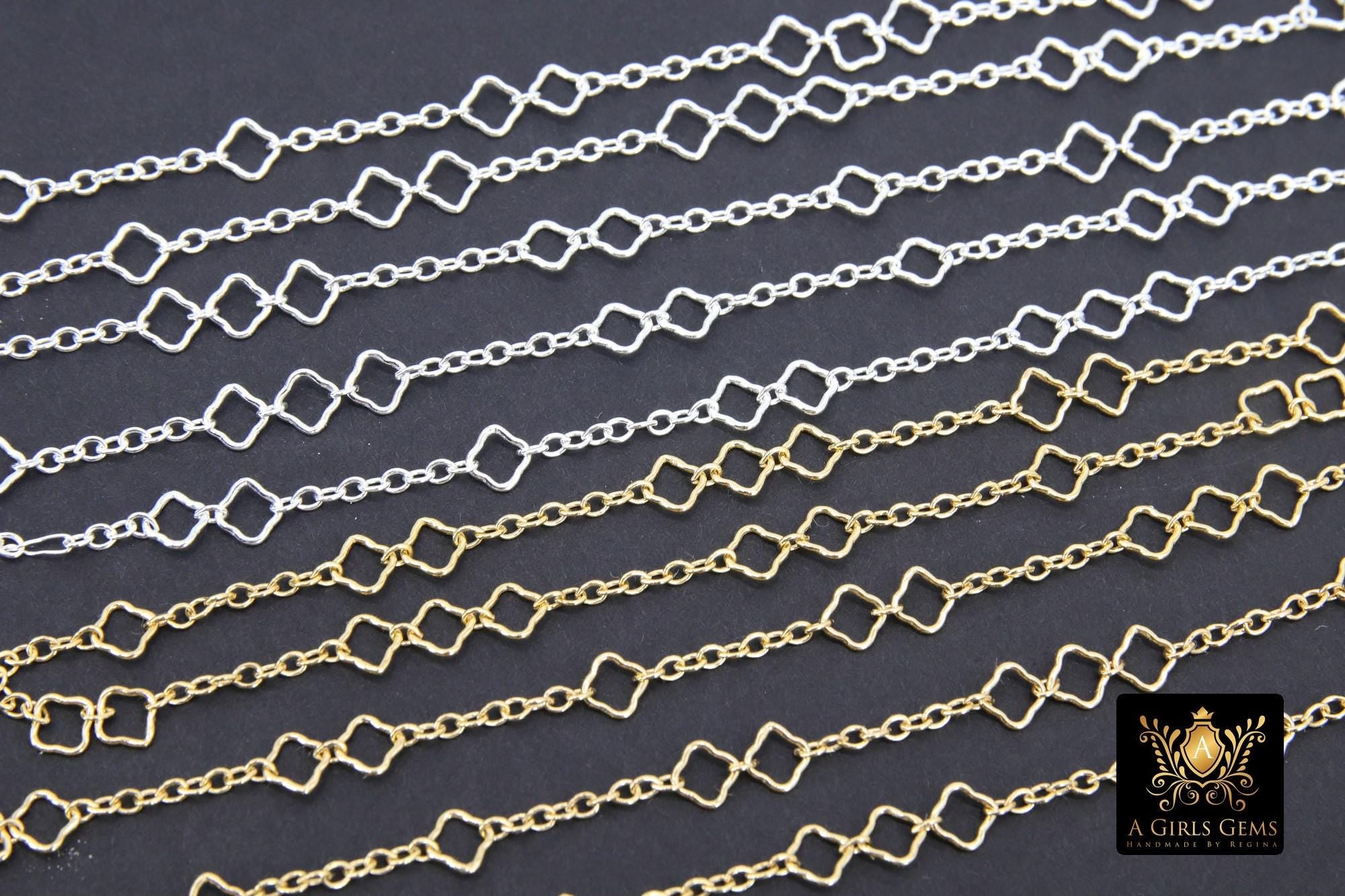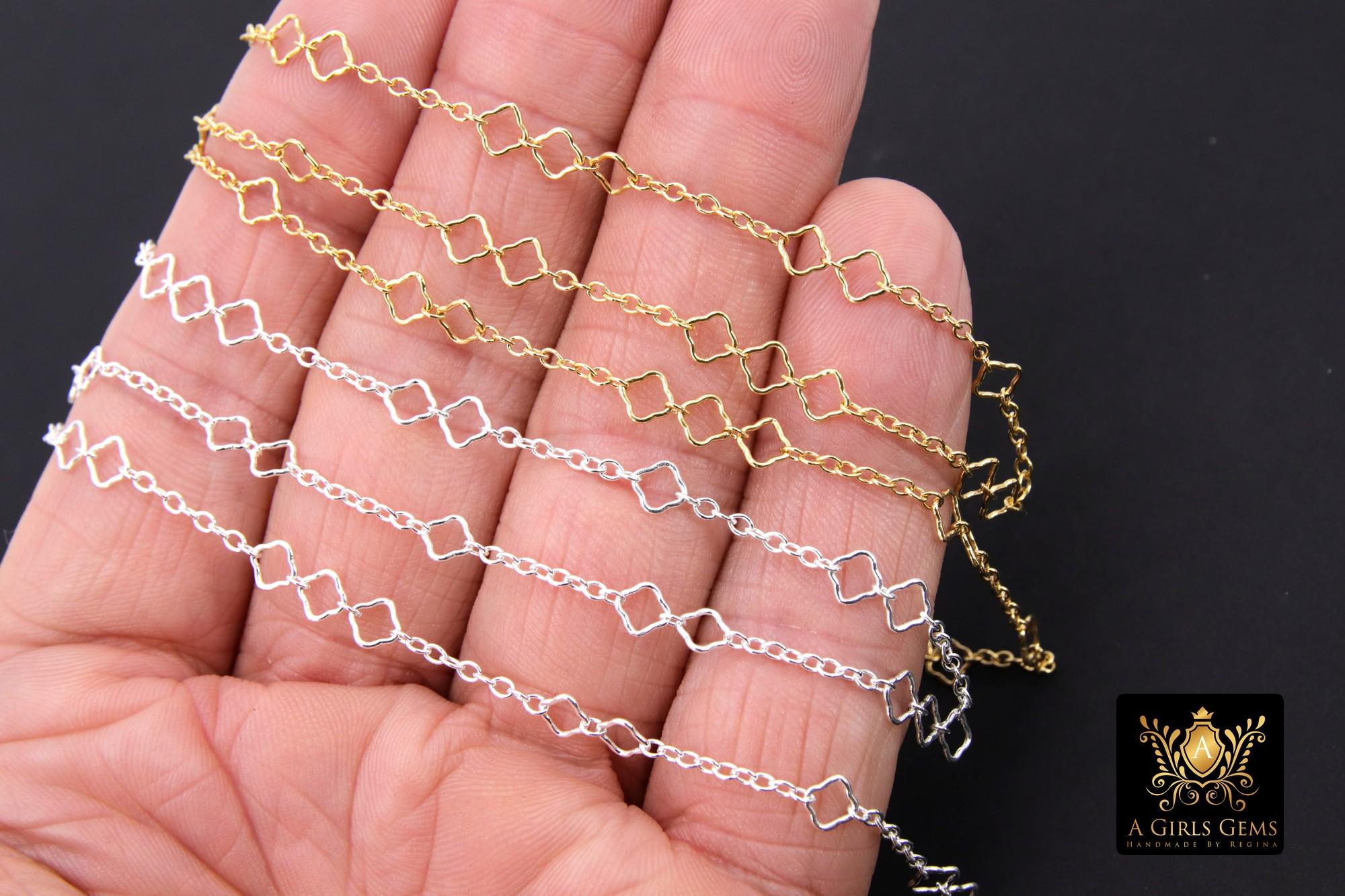 14 K Gold Filled or 925 Sterling Silver Clover Link Chains in Long Short Unfinished Permanent Jewelry Chains
