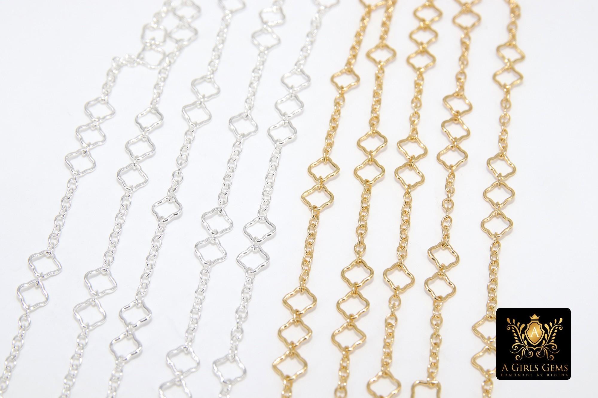 14 K Gold Filled Clover Chain, 5.1 mm Quatrefoil 925 Sterling Silver Links CH# 874, Unfinished Dainty Chain CH# 909