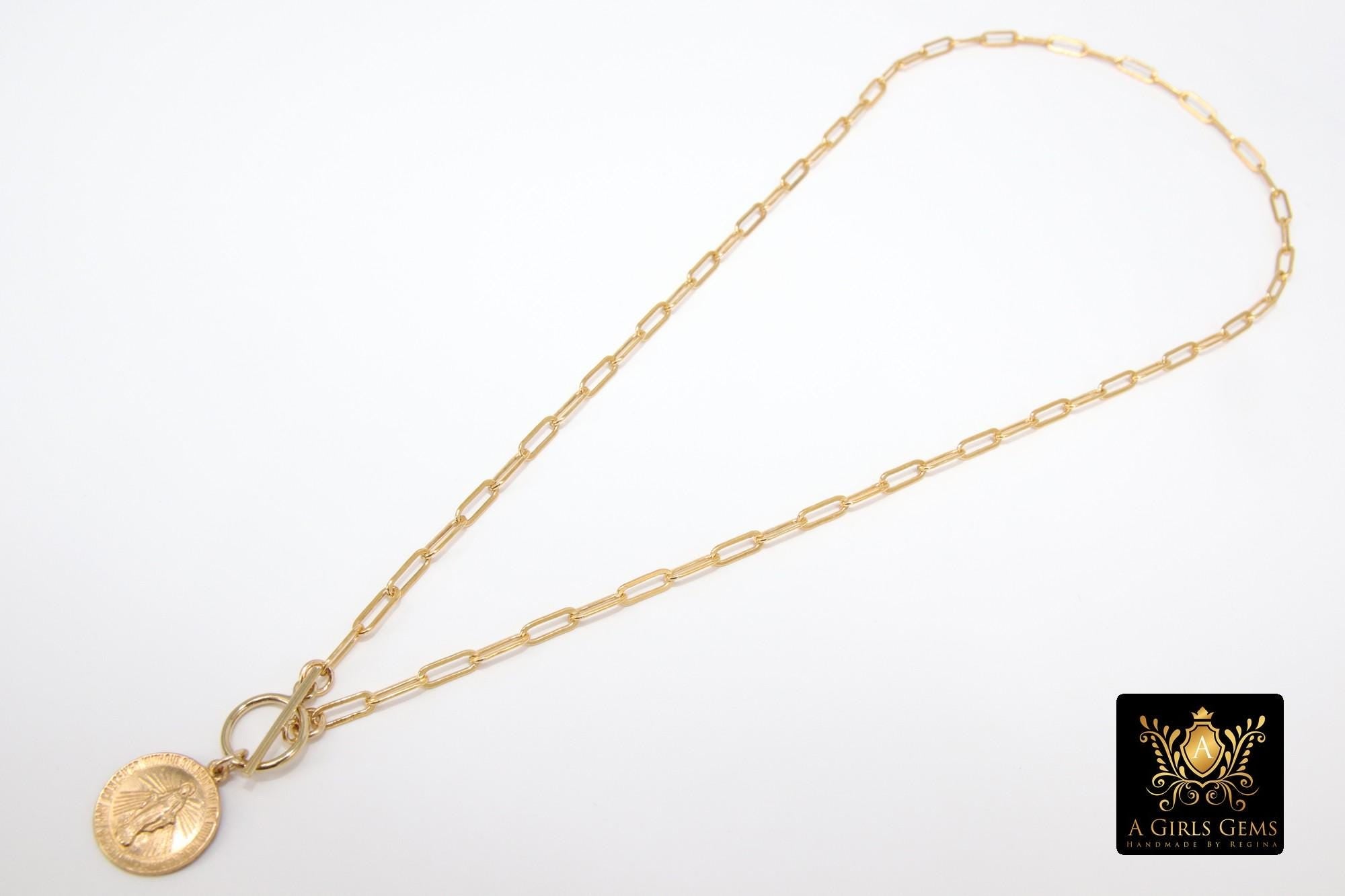 14 K Gold Filled Mother Mary Toggle Paperclip Necklace