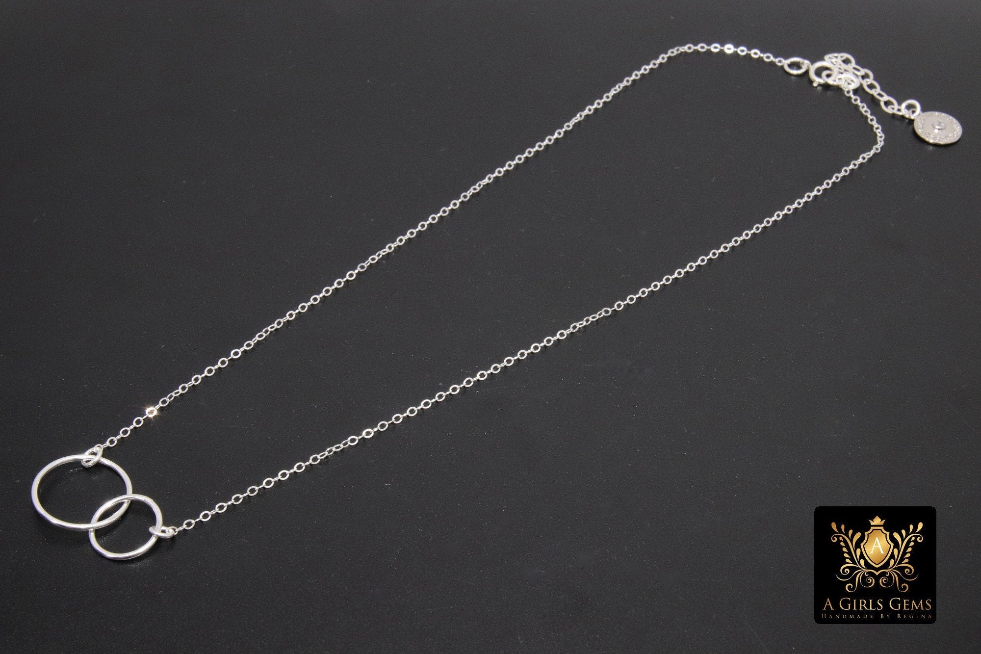 14 K Gold Linked Ring Necklace, 925 Sterling Silver Double Circle Infinity Chokers #684, Adjustable Eternity Forever Jewelry