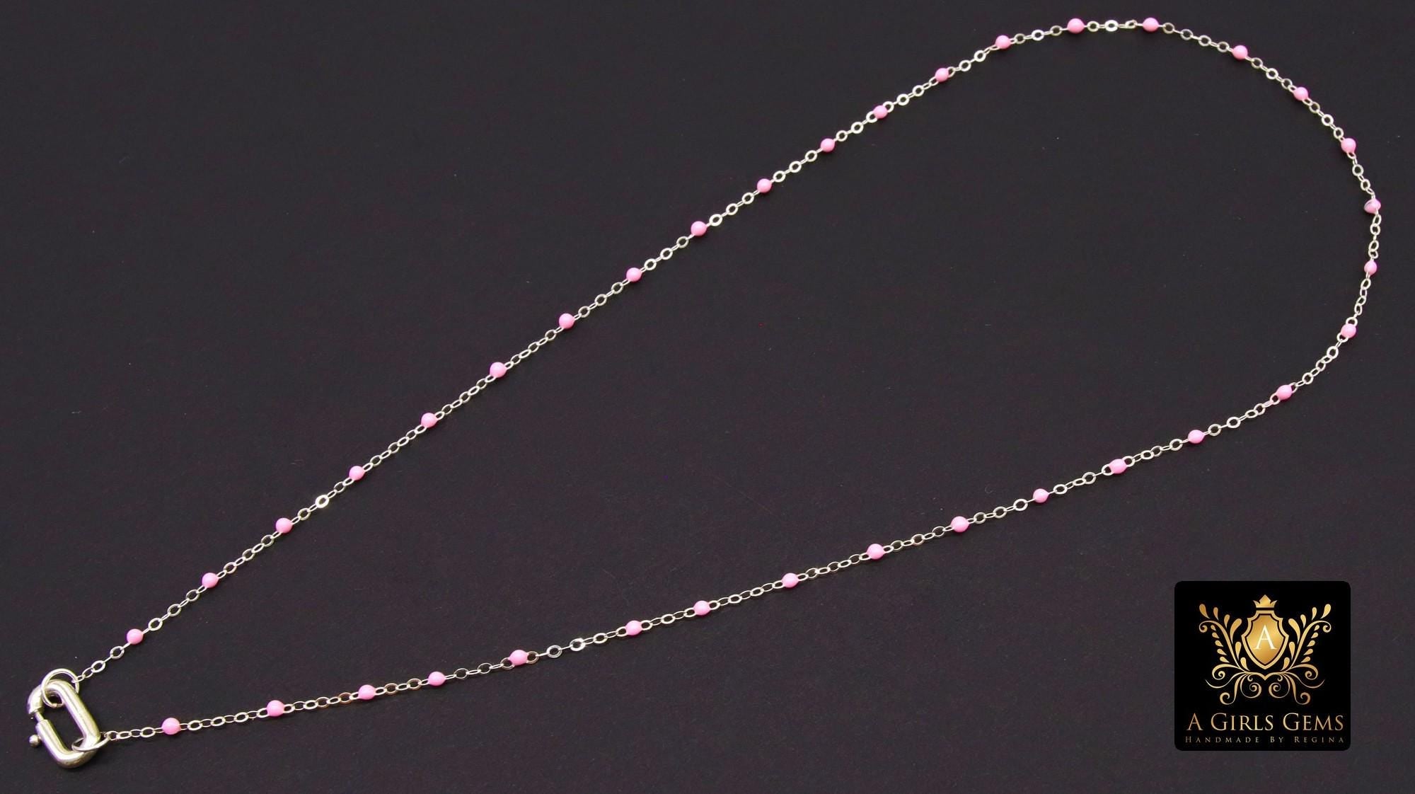 This necklace is as seen in Pictures on our 925 Sterling Silver Enamel Beaded Satellite Chains, ***NOT plated *** will last a lifetime. Includes a 925 Clasp in the front to add on your Pendants and Charms using a Jump Ring. Our most popular lengths are below. If you need a different length, please message us with any questions.