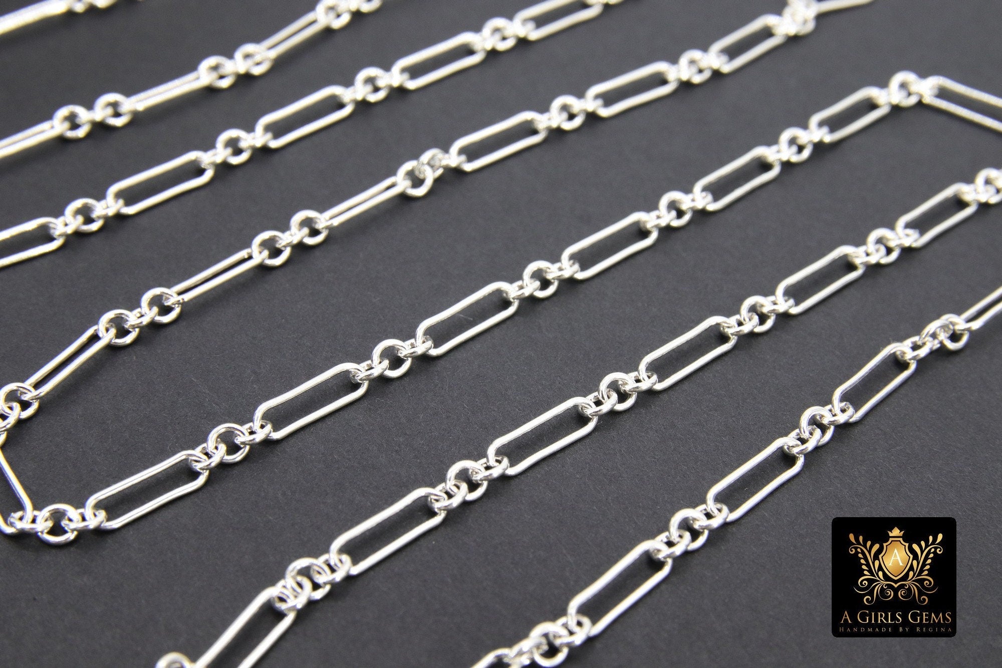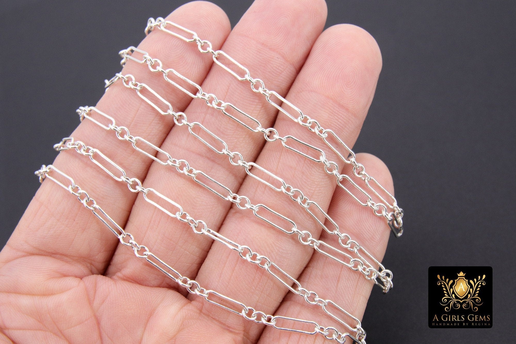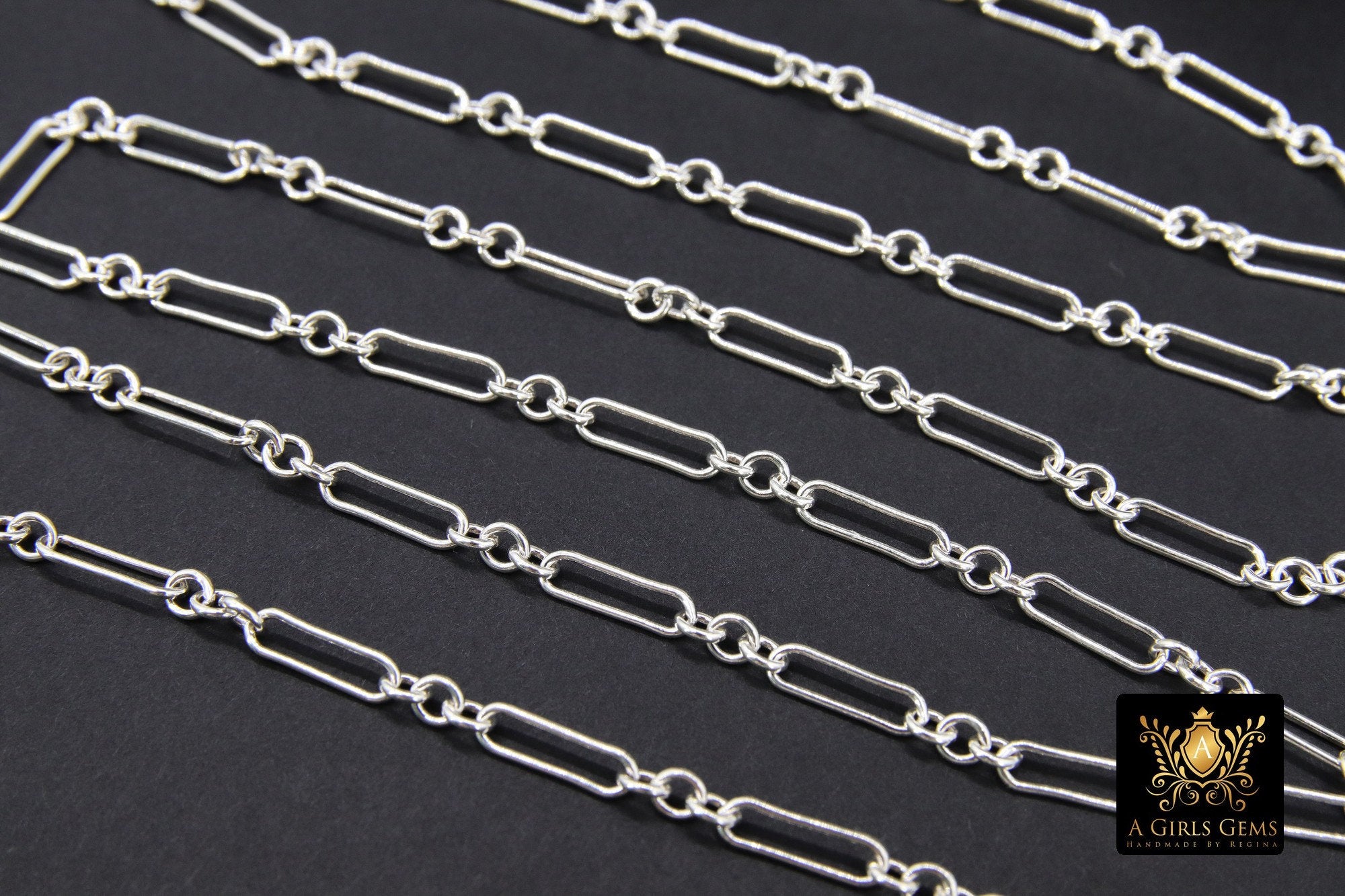 925 Sterling Silver Paperclip Chain, 11 mm Rectangle Drawn CH #807, Large Long Short Rolo Link Chain