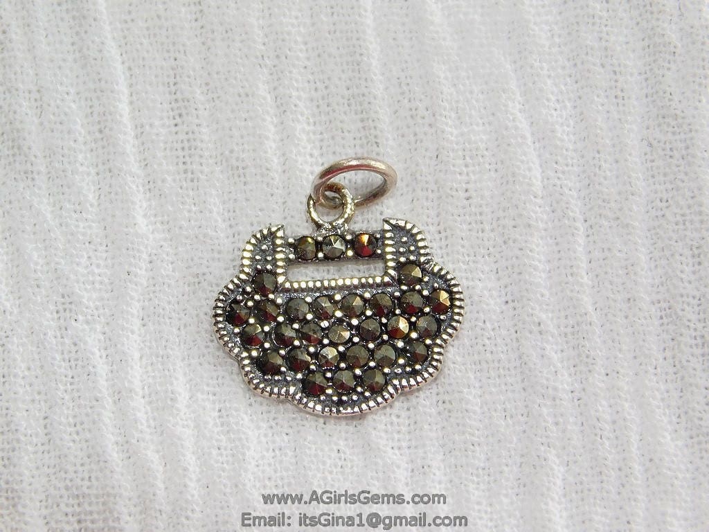 Micro Pave Purse Charms, 925 Sterling Silver Paved Marcasite Longevity Lock Pendant, Black Charm Dangle