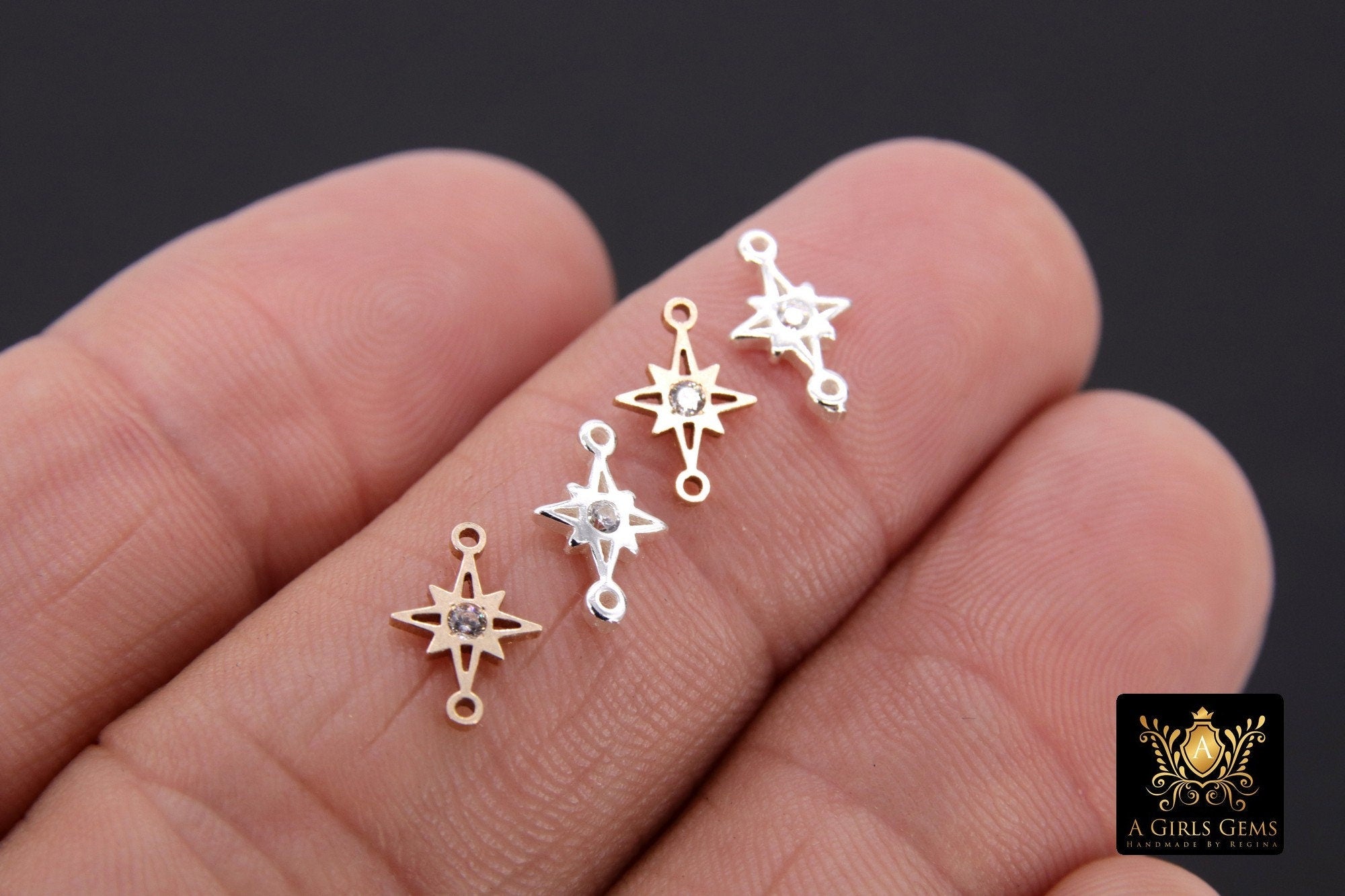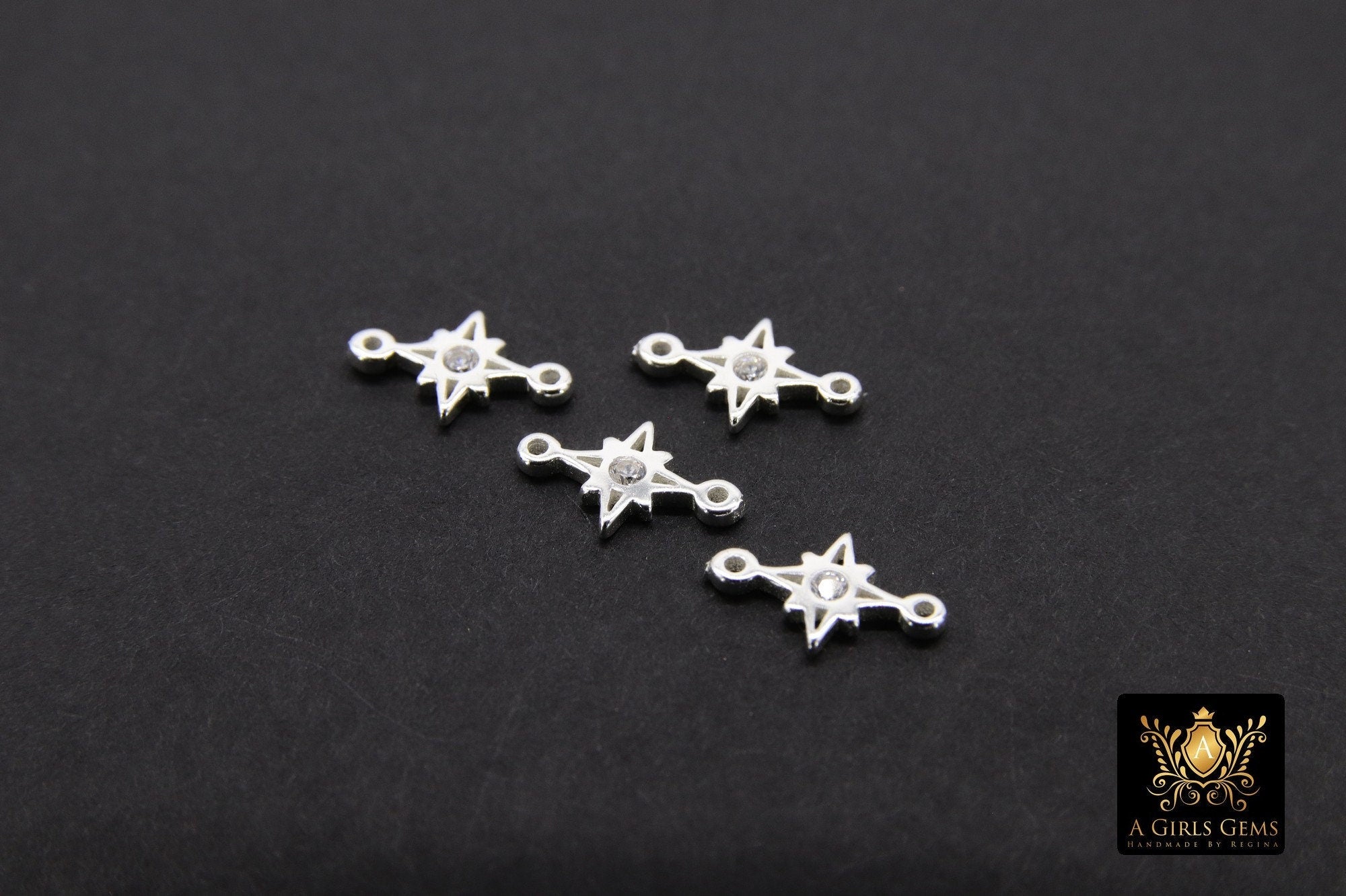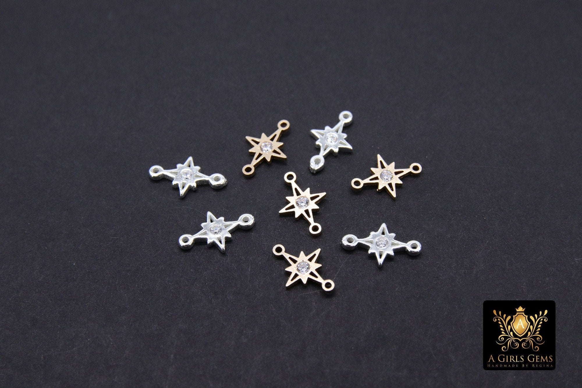 14 K Gold Filled CZ Star Connectors, 6 mm CZ 925 Sterling Silver Links # 3500, Starburst Permanent Jewelry
