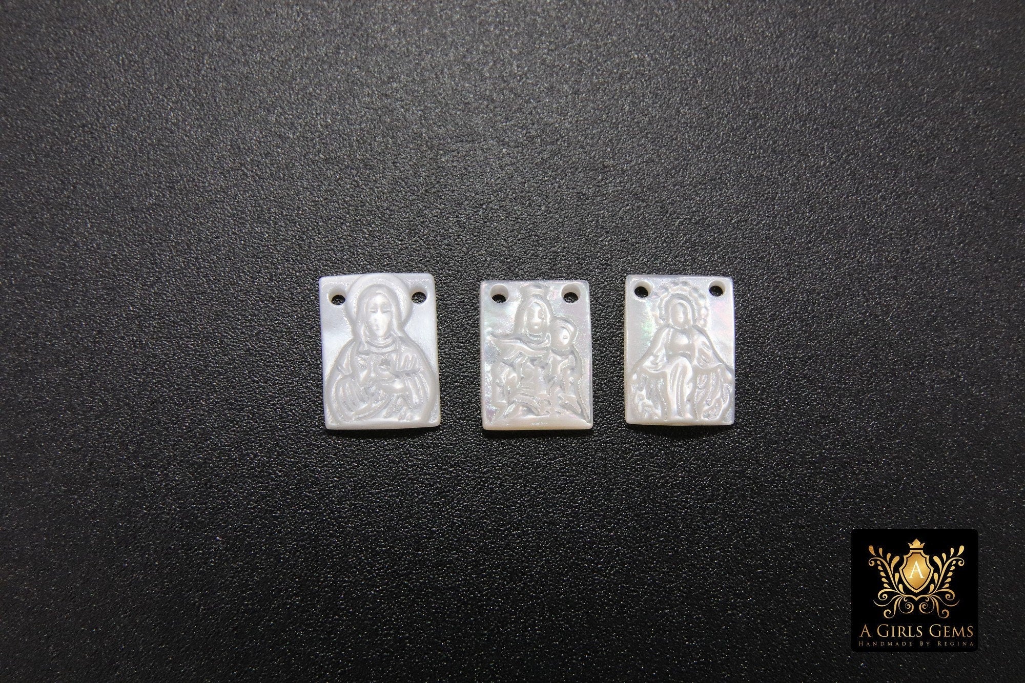 14 k Gold Filled Madonna and Child Scapular, Mother of Pearl 925 Silver Jesus # 257, 2 Hole Charms