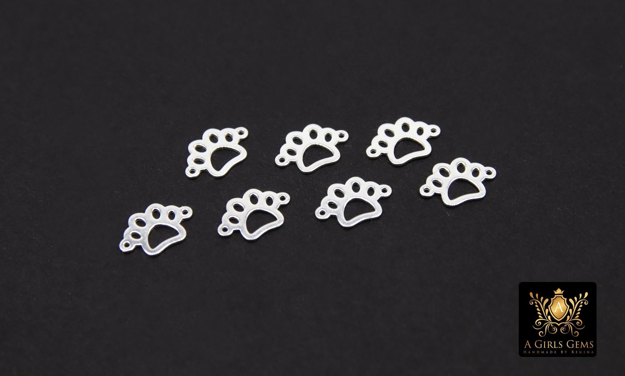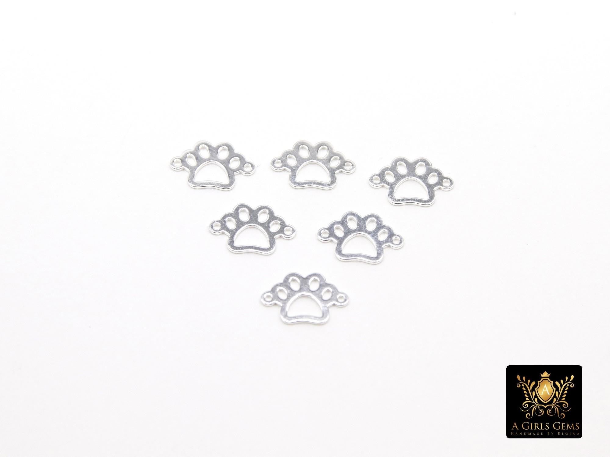 14 K Gold Filled Tiger Paw Connector, 6 mm Paw Shaped 925 Sterling Silver Animal Charm # 3204, Permanent Jewelry Dog Paw Links