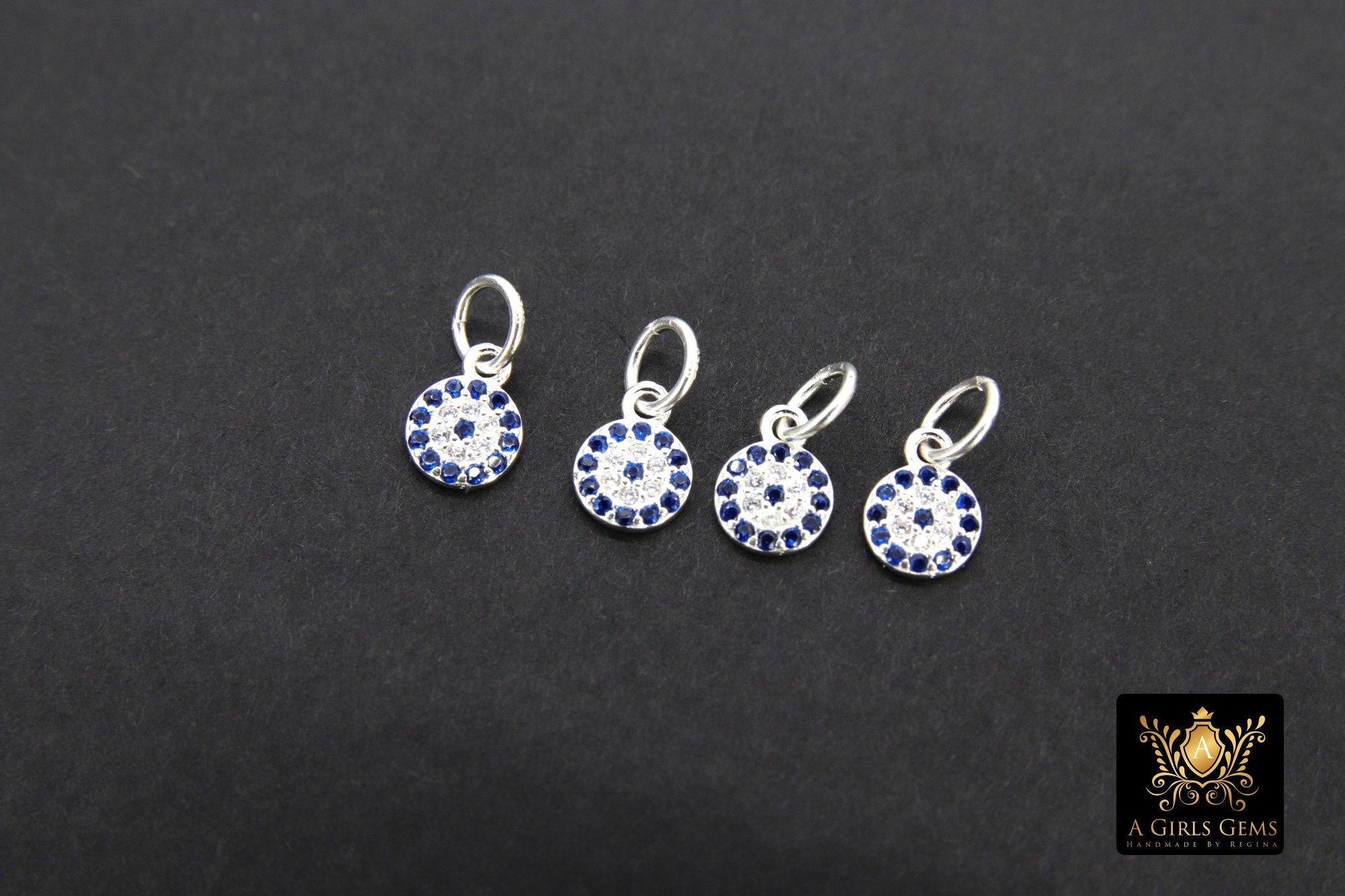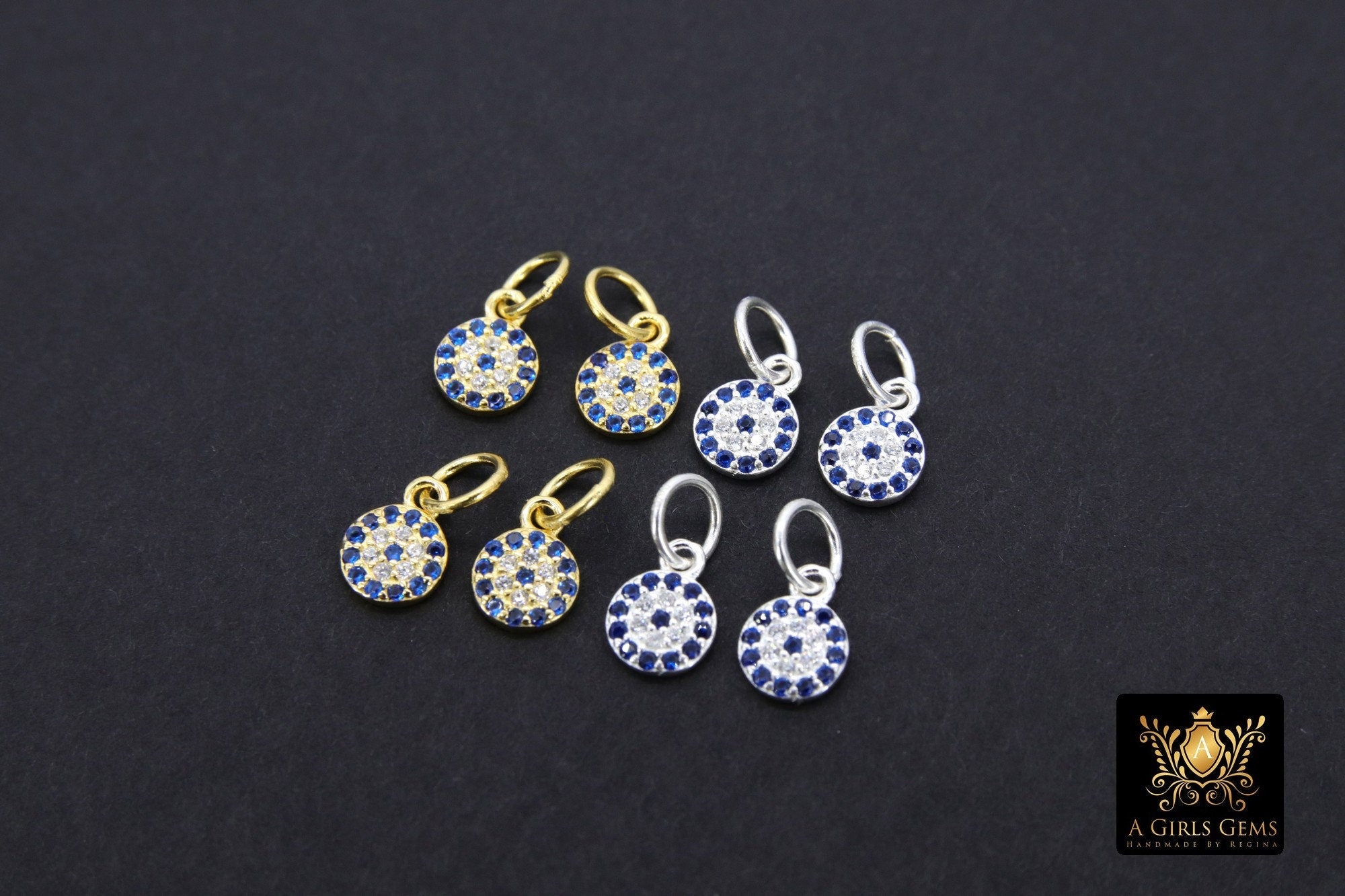 925 Sterling Silver Evil Eye Charms, 6 mm Gold CZ Micro Pave Blue Evil Eyes Charms # 3508, Tiny Round Minimalist Jewelry Charm