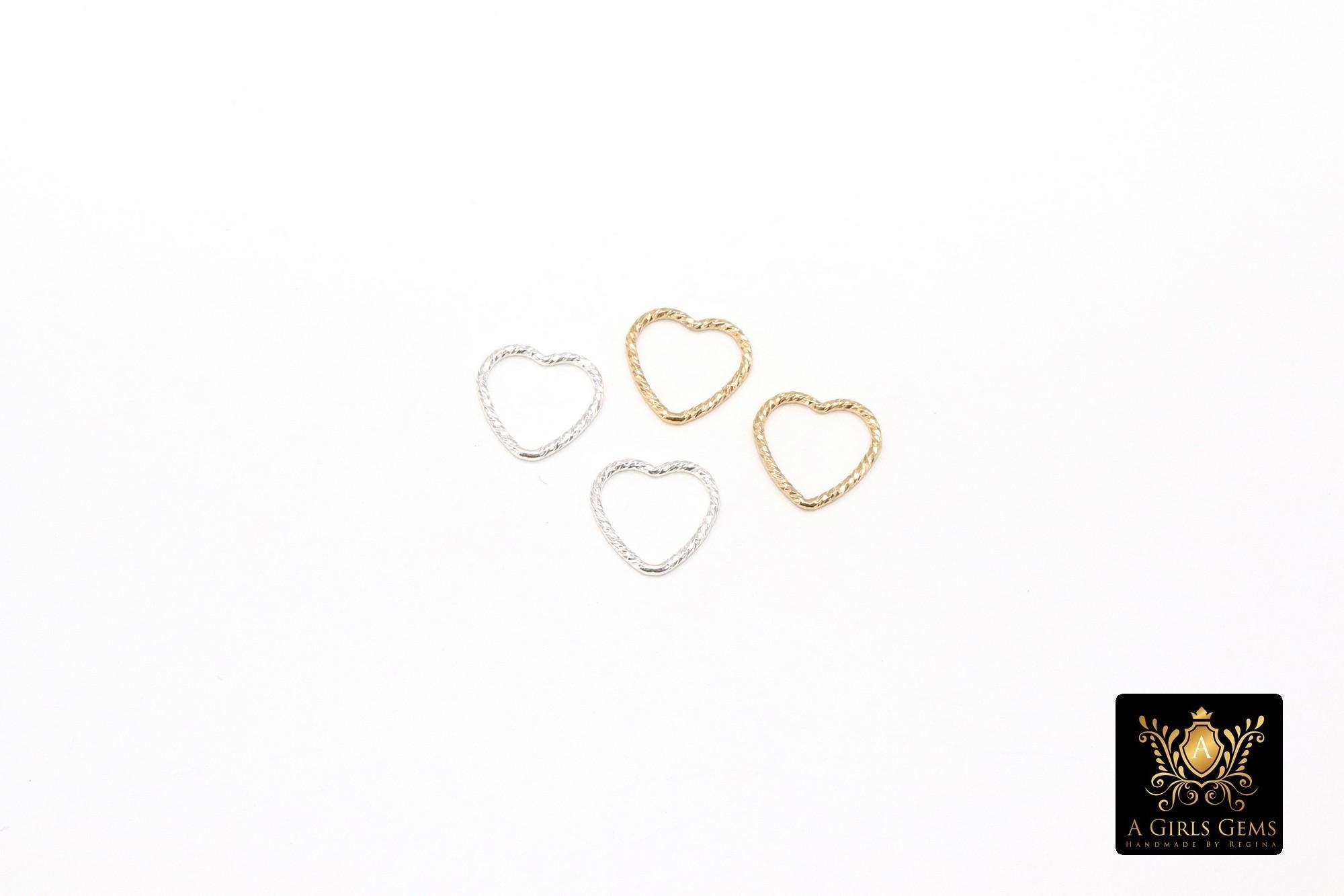 925 Sterling Silver Textured Heart Charms, 10 mm 14 K Gold Filled Soldered Links # 2199, Twist Closed Heart Rings