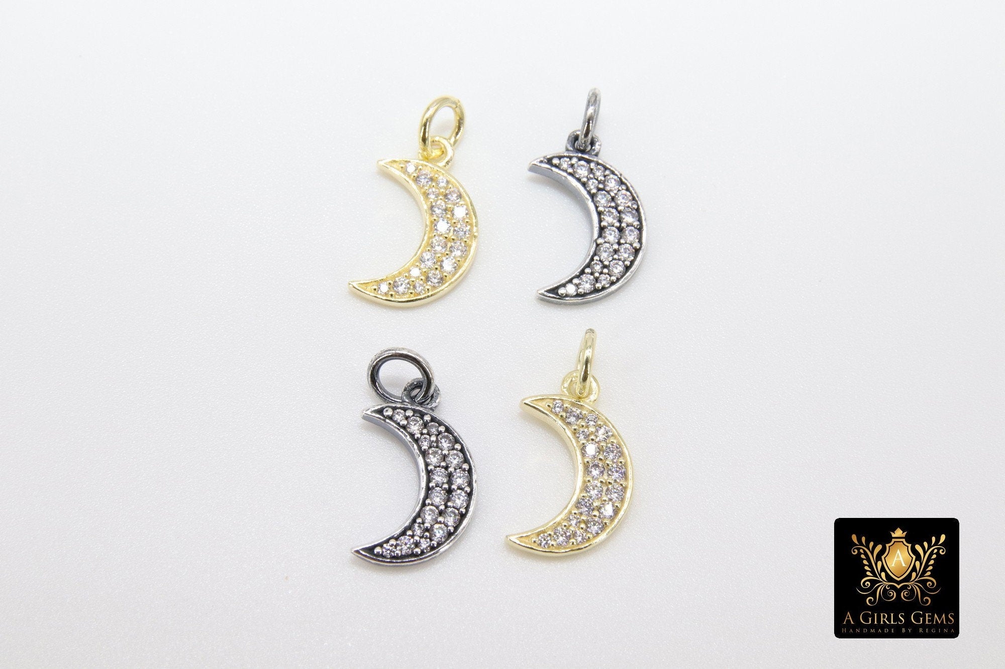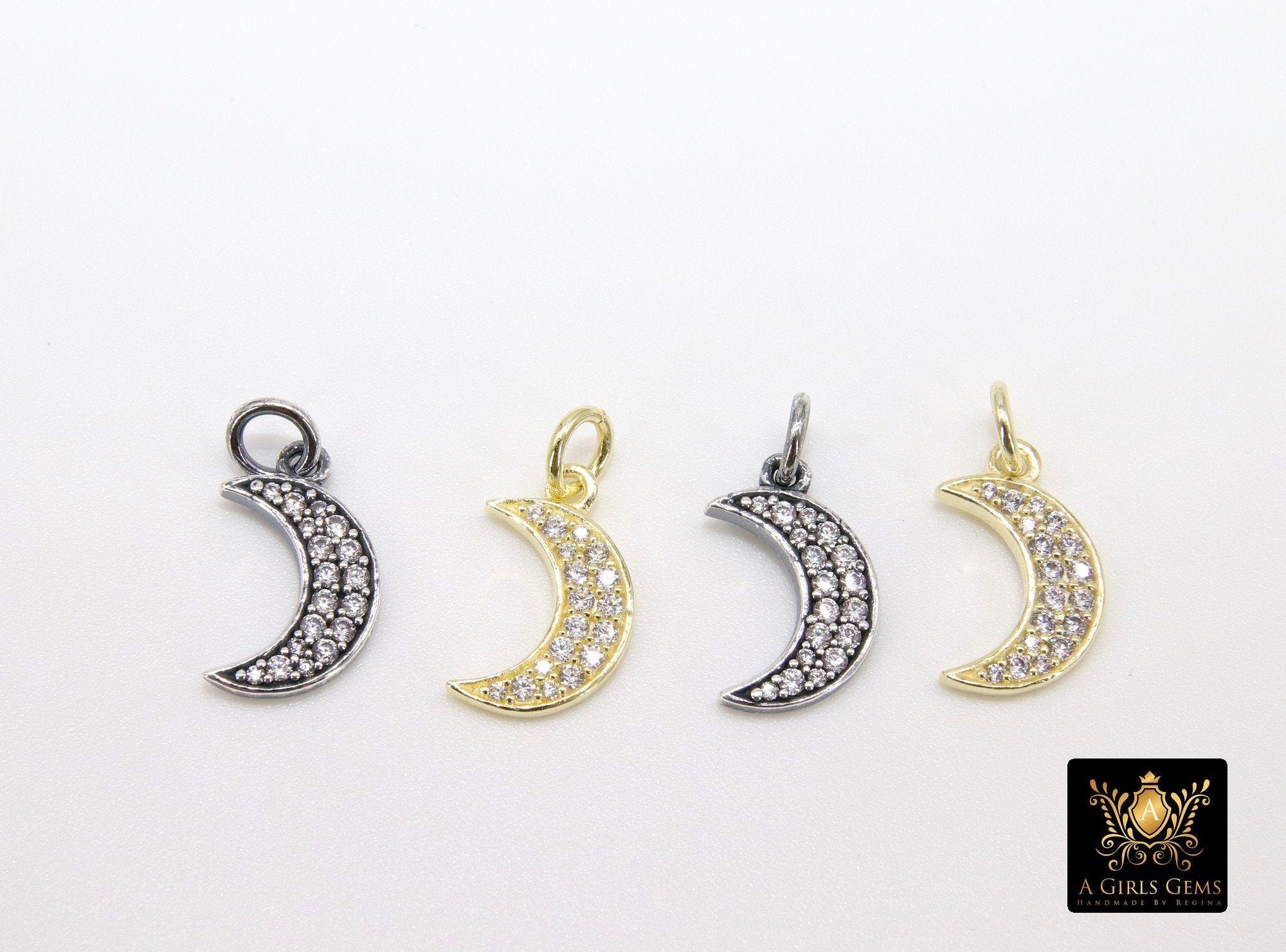Gold CZ Pave Moon Charm, 14 K Gold over 925 Sterling Silver Crescent Moon # 2346, Half Crescent Moon Charms