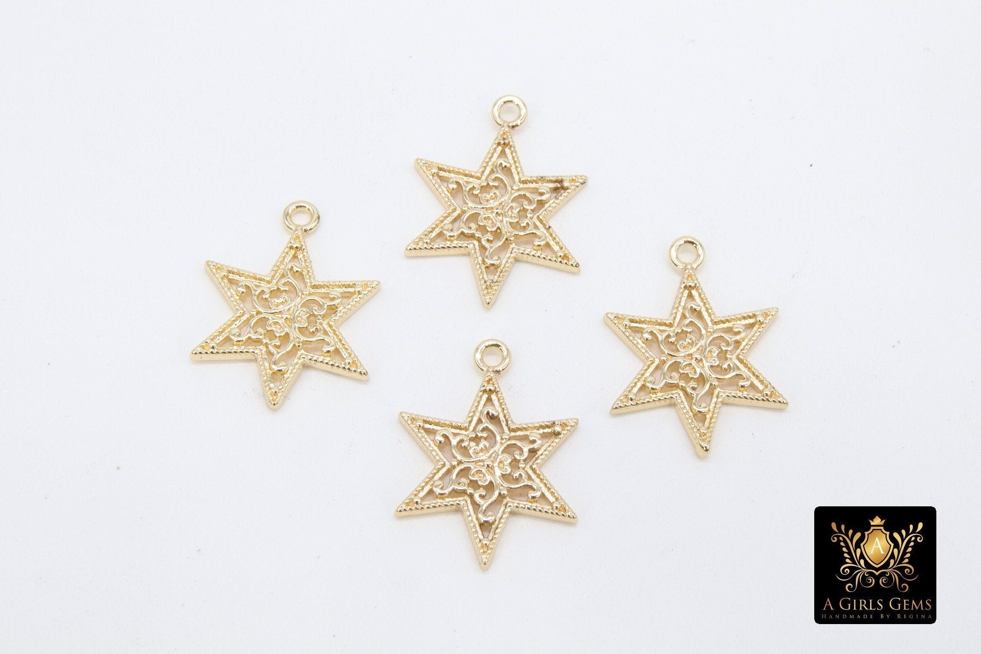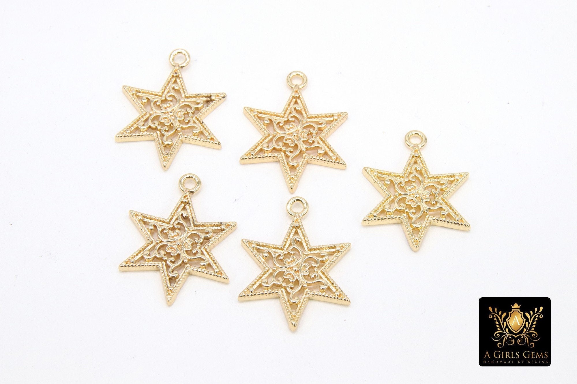 Gold Filled Star Charms Pendants, Starburst Filigree Patterned Jewelry Charms