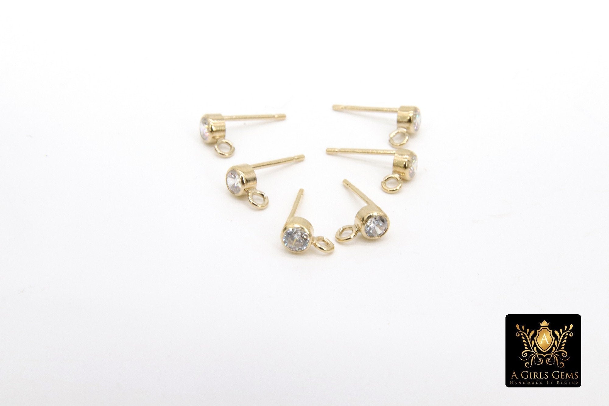 14 K Gold Filled Cubic Zirconia Earrings, CZ Stud Earring Post #2259, Findings with Open Loops