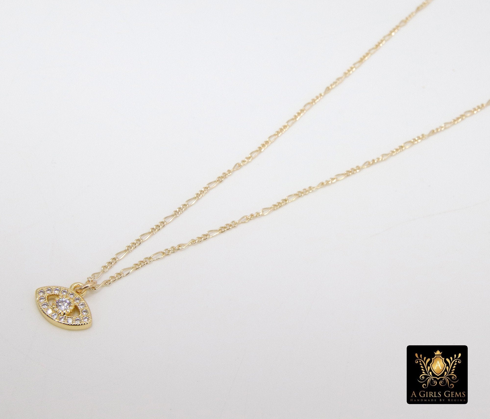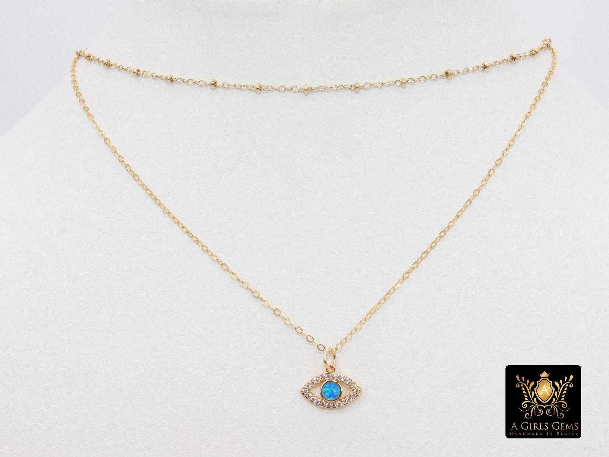 14 K Gold Filled Evil Eye Dainty Necklace, Clear Eye Cable Necklace, CZ Turquoise Blue Turkish Greek Evil Eye