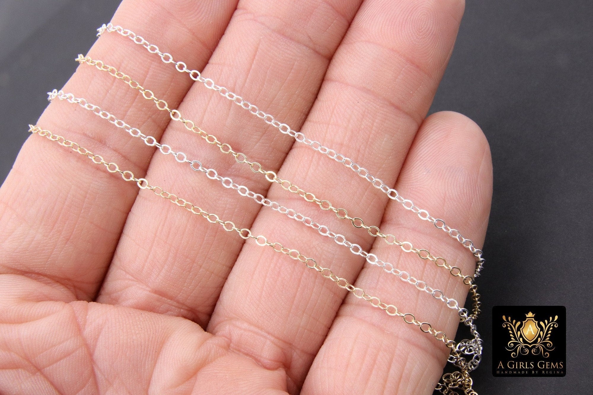 14 K Gold Filled Hammered Cable Chains, 2.1 mm 925 Sterling Sliver CH# 837, Dainty Chain CH# 729