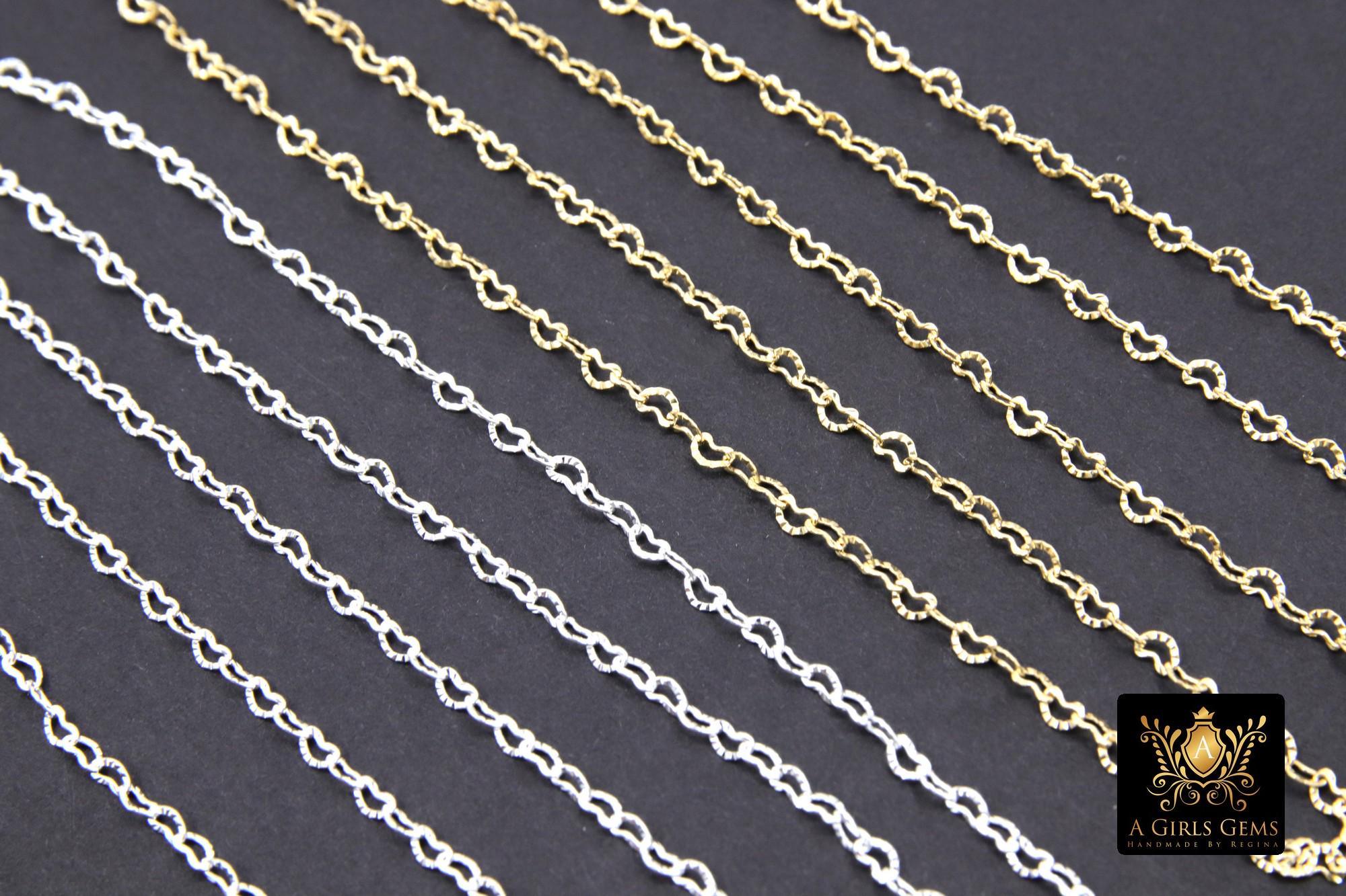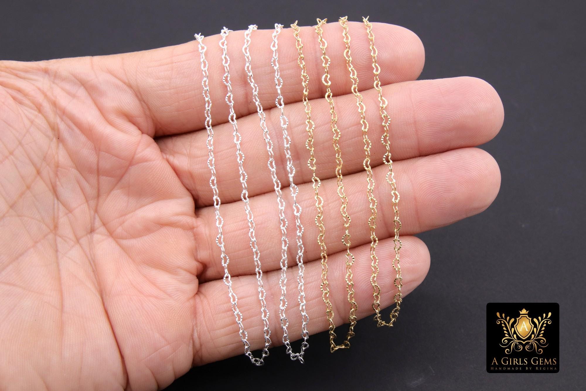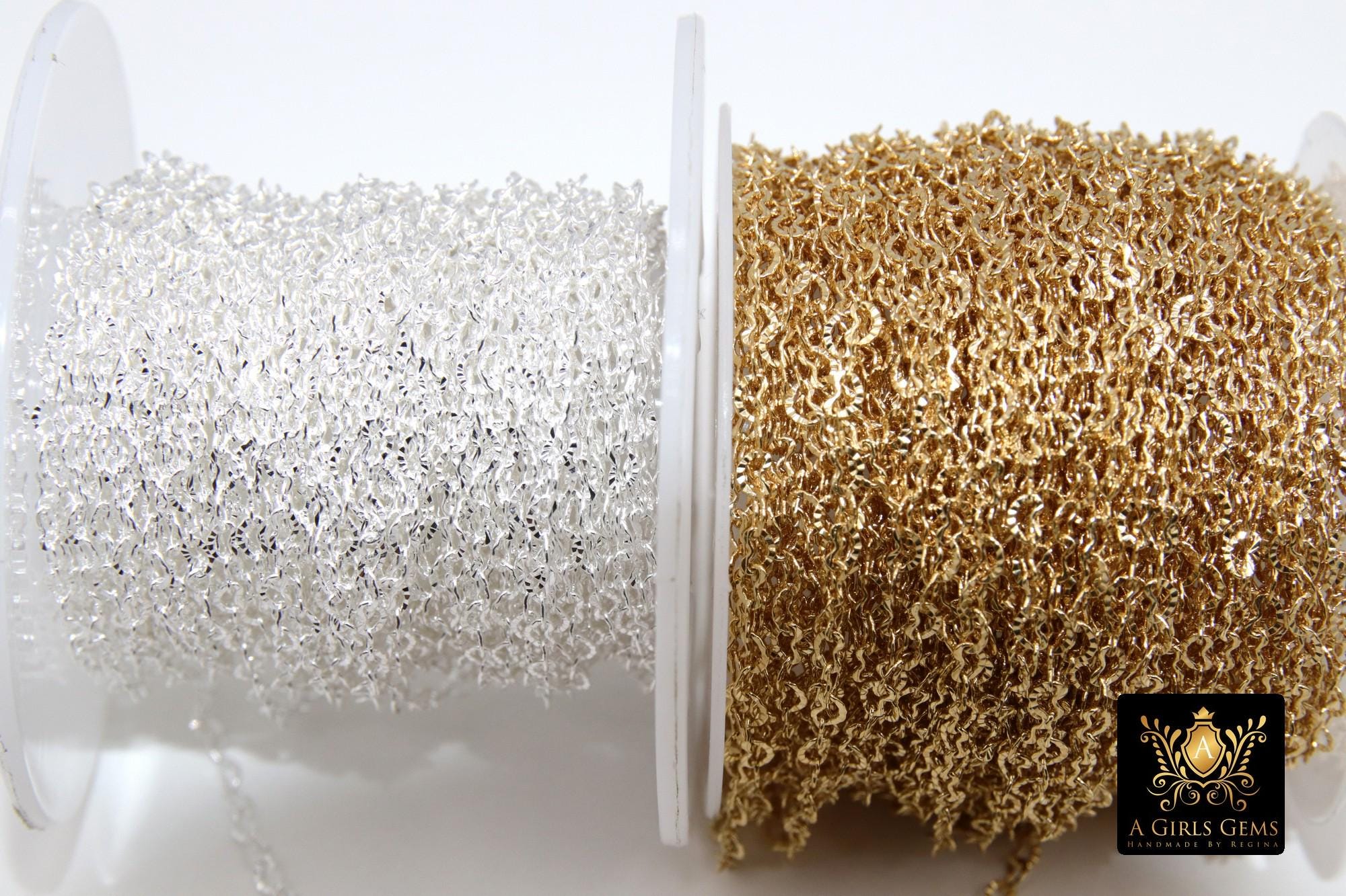 Notes Regarding Chains: All of our chains are cut in a continuous chain unless it is the end of a roll. We do not cut 10 feet in 1 foot sections. Any 925 Sterling Silver or Silver plated chains will tarnish. We suggest keeping your chains in a sealed jewelry bag to help prevent this. I'm sorry but all cut chains are non refundable. We recommend you try a foot sample before large purchases. Stainless steel chains come in gold or silver and are known for their non tarnishing properties. We don't control the colors, where gold may be applied on tight weave or small chains. All of our 14 K Gold Filled chains, charms, or findings are Genuine 14/20 Gold Filled. To be called gold filled by US LAW, the plating needs to be very very thick, at least 5% of weight. We do not replace for slight imperfections, defects, or variations in factory made chains, slight variations from photos, or minor detail damage issues.