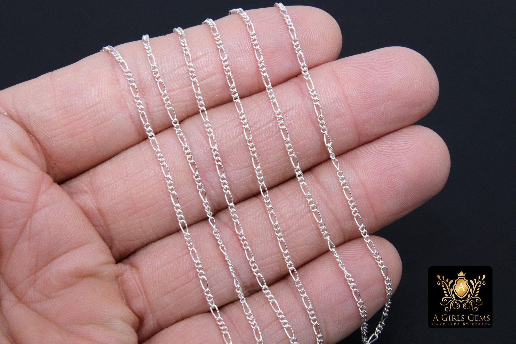 925 Sterling Silver Figaro Chains, Unfinished By The Foot CH# 842, 1.5 mm 14 K Gold Filled Long and Short CH# 742