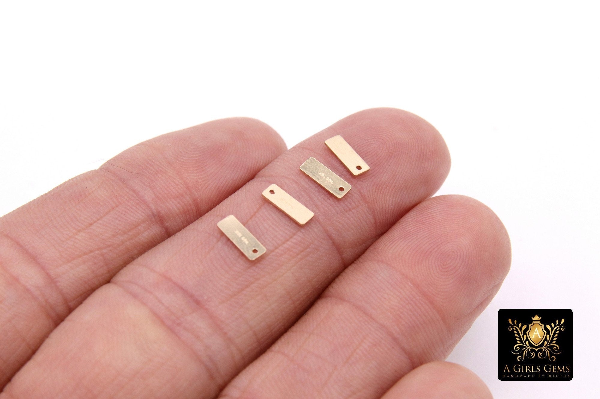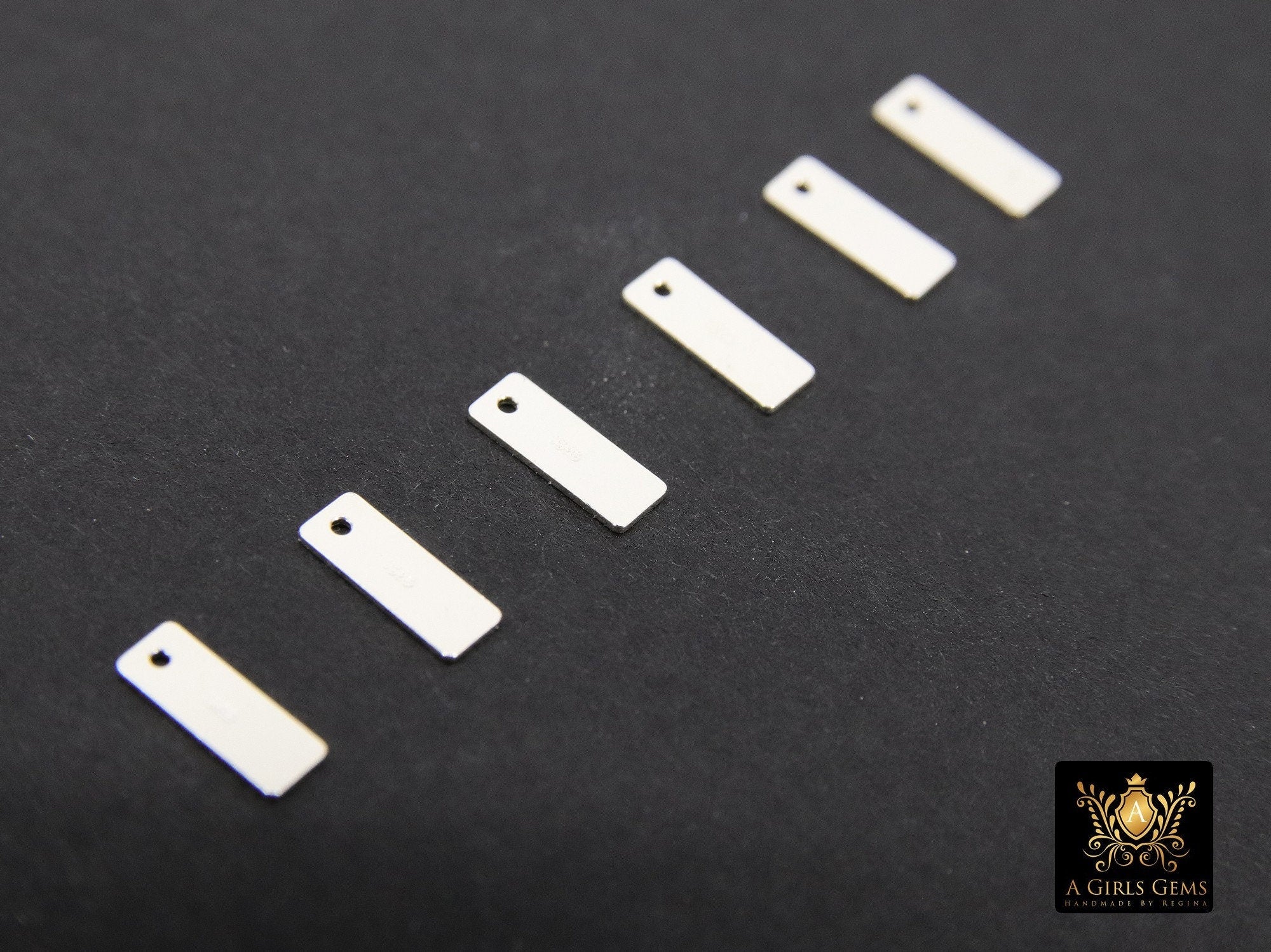 925 Sterling Silver Rectangle Charms, Gold Quality Tags # 2806, 3 x 8 mm 14 K Gold Filled Stamped 14 20