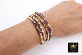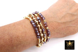 Purple and Gold Bracelets, Stretchy Beaded Dainty Bracelet, by Regina Harp Designs