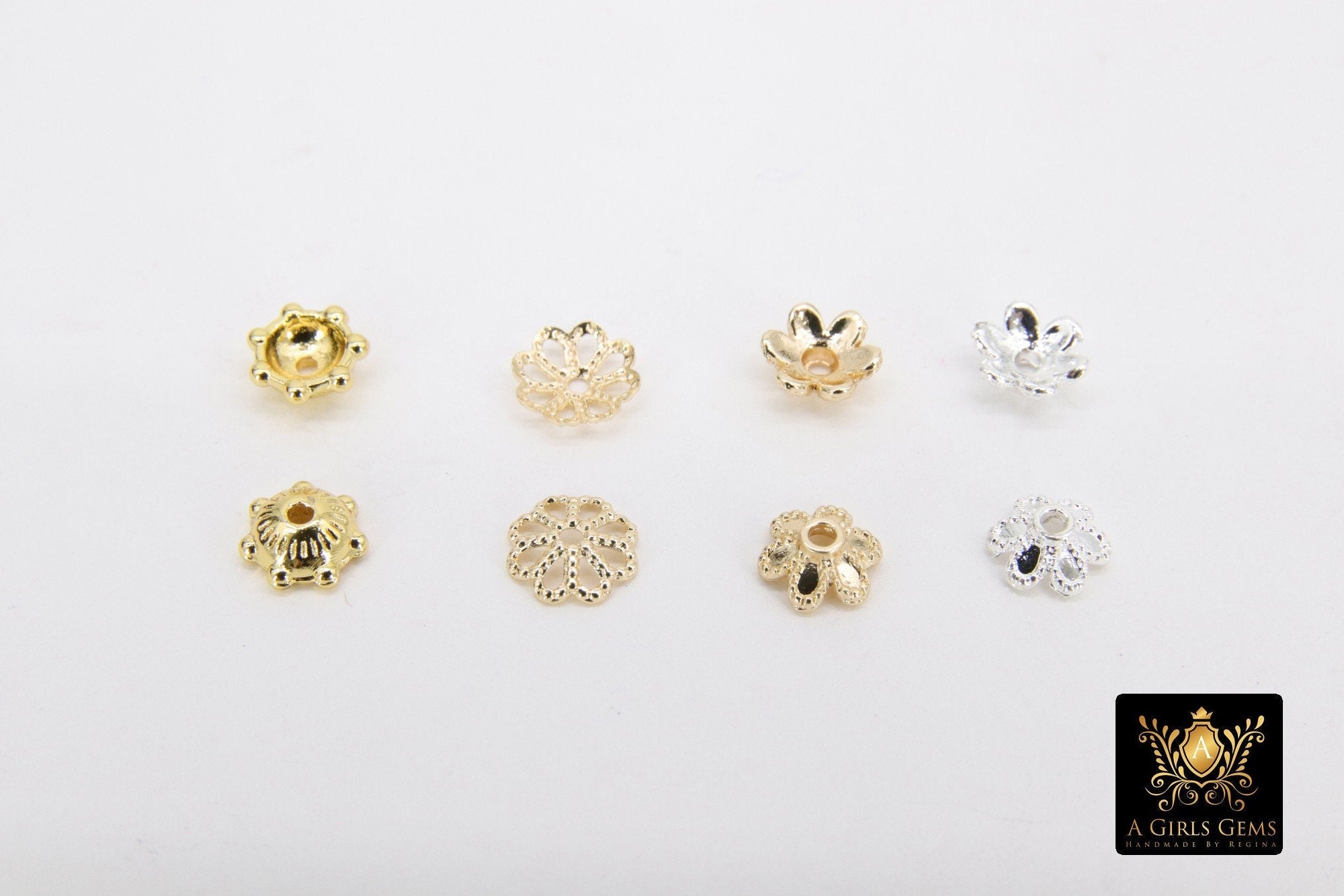 Choice of Four Different Styles of Bead Caps in Gold and Silver 6 mm Styles, High Quality Smooth Plating