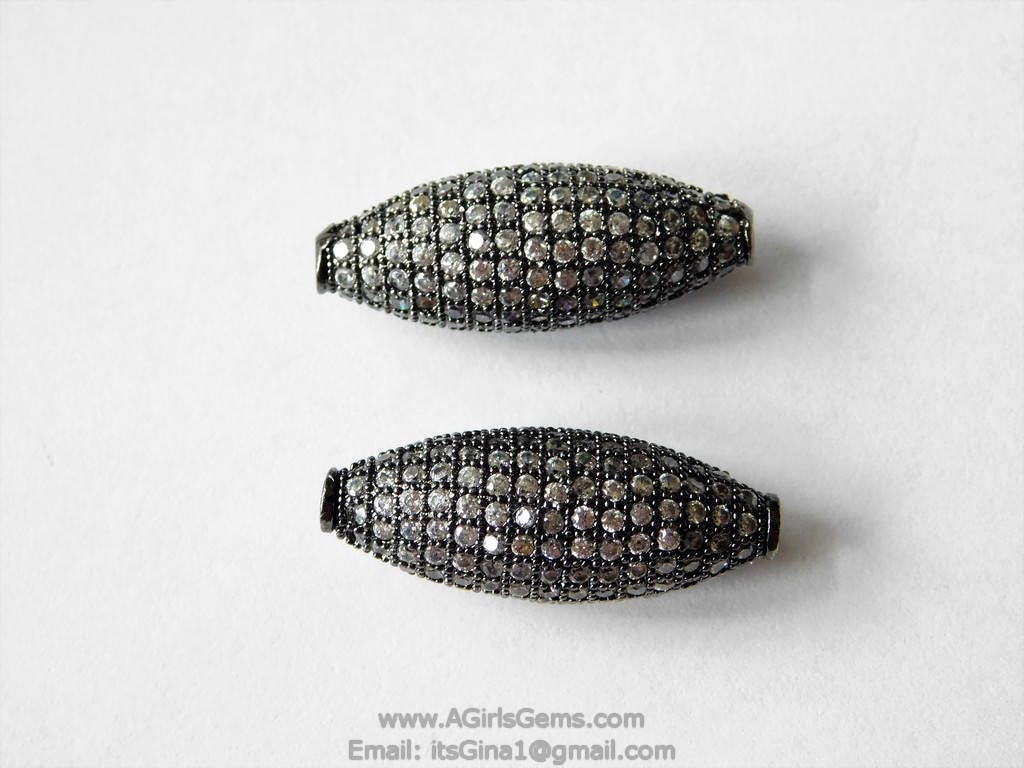 Micro Pave Focal Bead Cubic Zirconia 11 mm x 28 mm Gunmetal Black Plated Oval Tube Focal Bead CZ Focal Bead Spacers