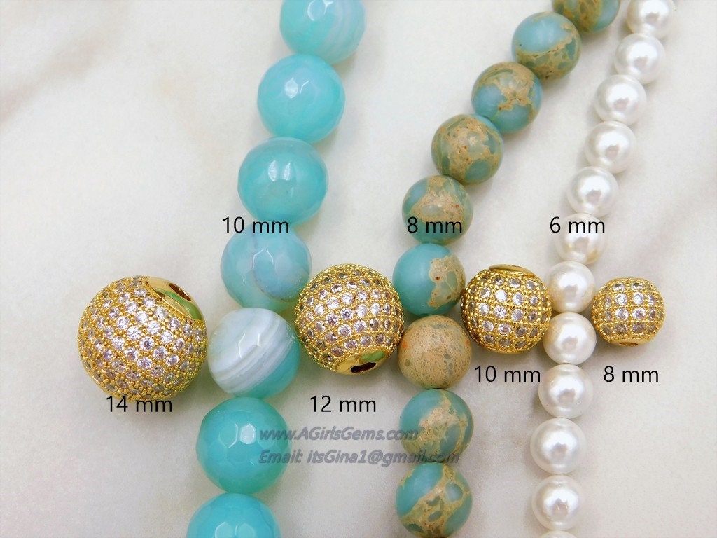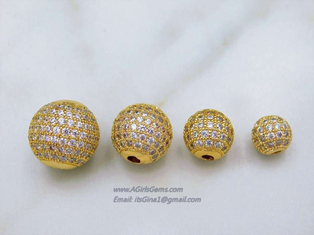 Micro Pave Beads, Rose Gold CZ Round Beads *ALL Sizes* Cubic Zirconia Diamond Pave 6.8.10.12.14 mm Clear CZ Bead Spacers Focal Beads AGGSM-71B