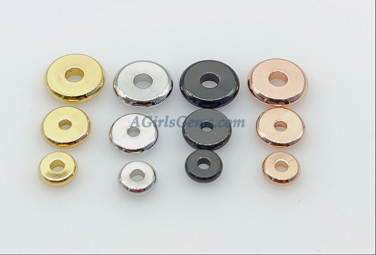 60 Pieces Rondelle Spacer Donuts Spacer Beads, 4/6/8/10 mm Rose/Silver/Black and Gold/Flat Beads Spacers, High Quality Plating Smooth Finish