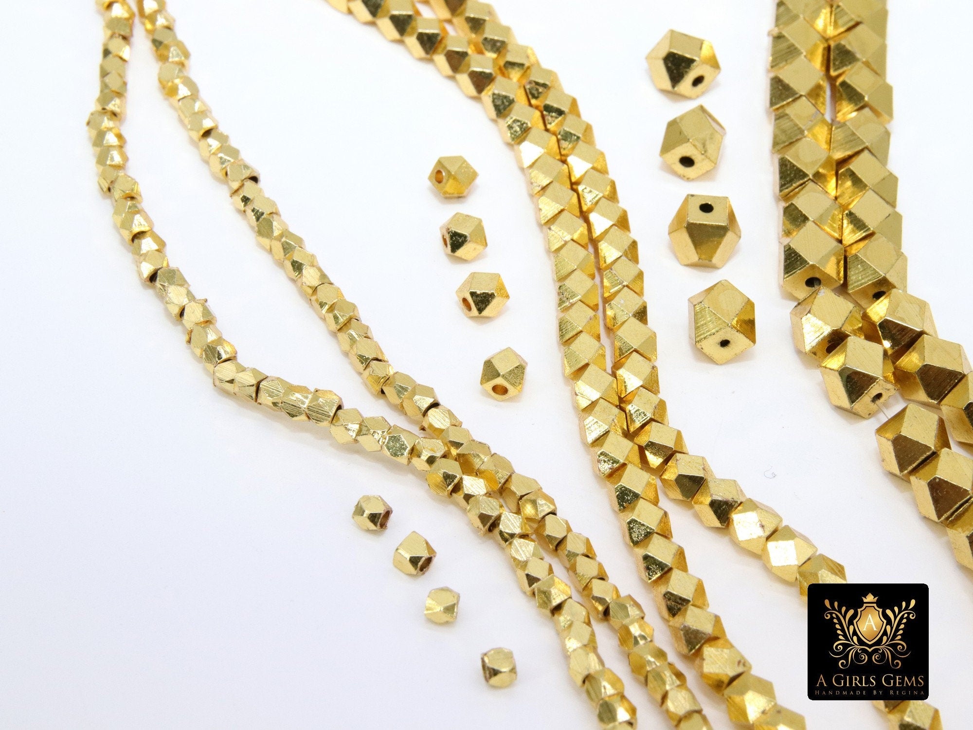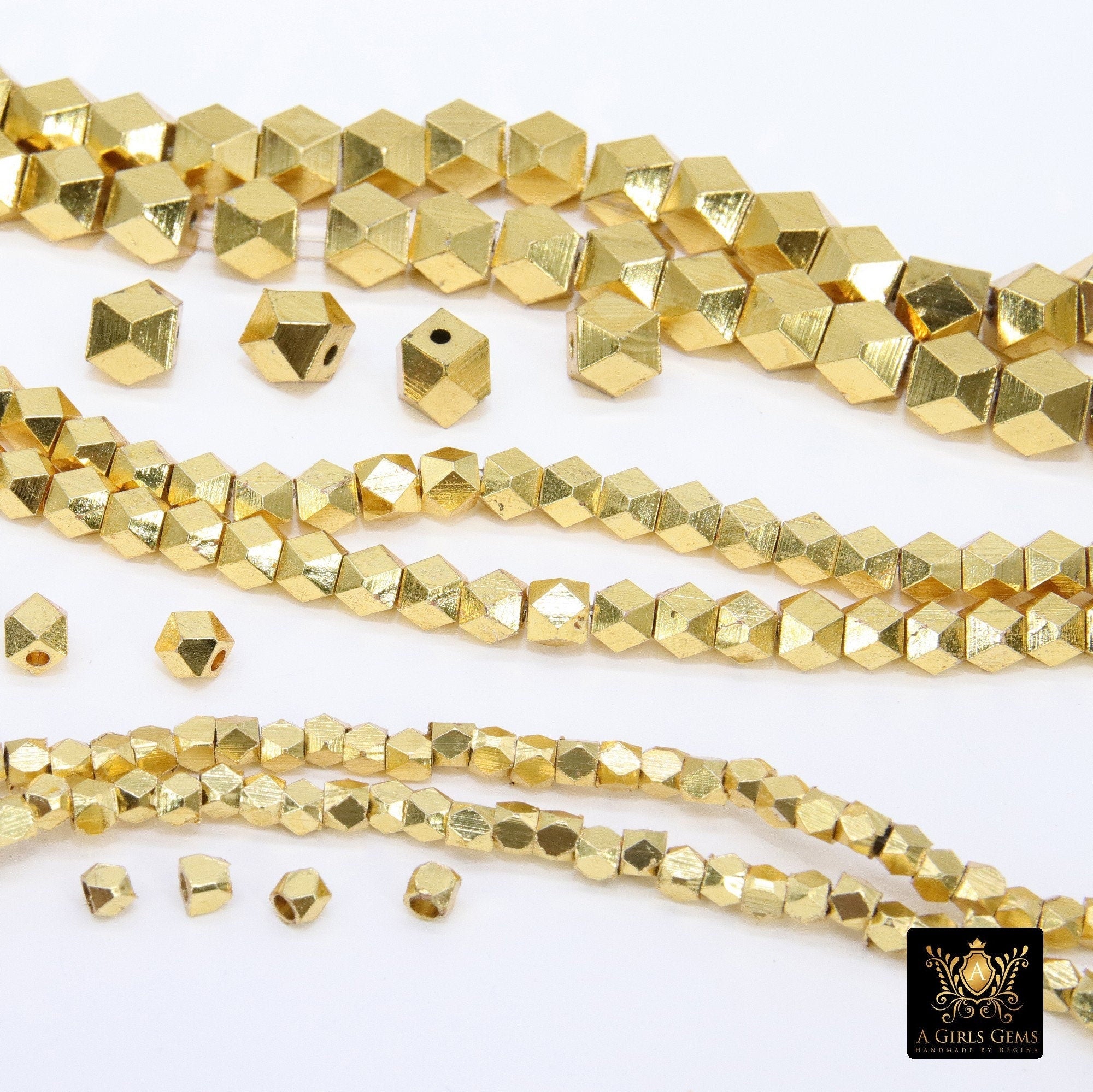 Brushed Gold Faceted Cube Beads, 20 Pc Hexagon Nugget Metal Beads # 2978, 3 mm 4 mm 5 mm or 6 mm Spacers