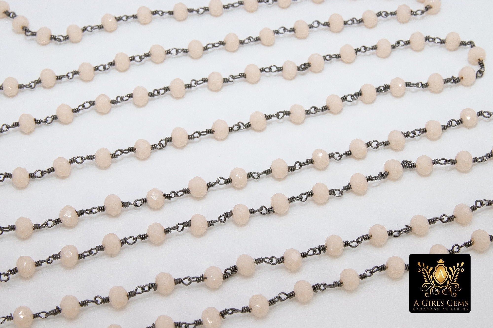This is a Beige Light Cream AB crystal in 4 mm or a Cream rosary chain in 6 mm with Gunmetal Black Plated wire wrapped.