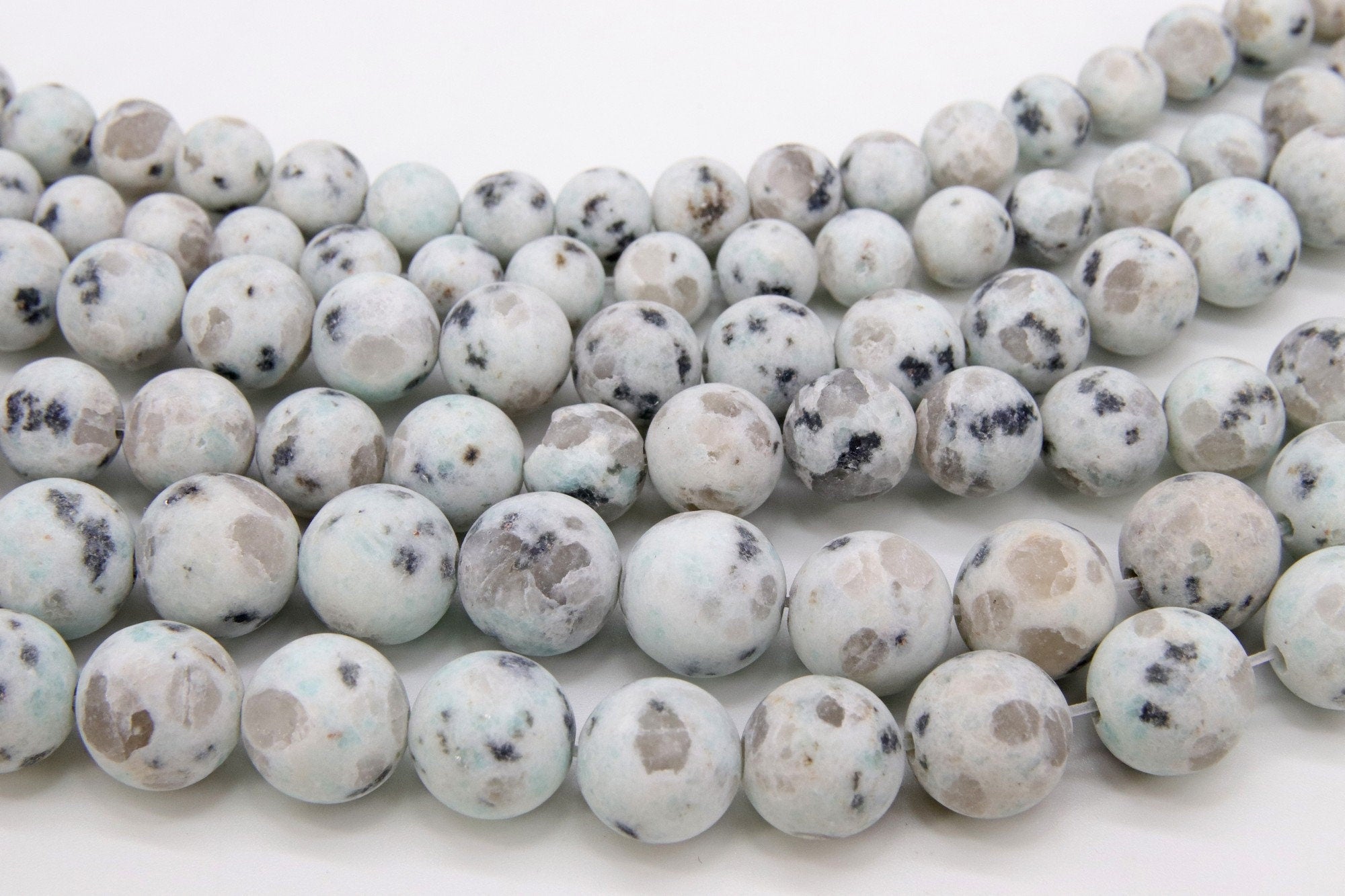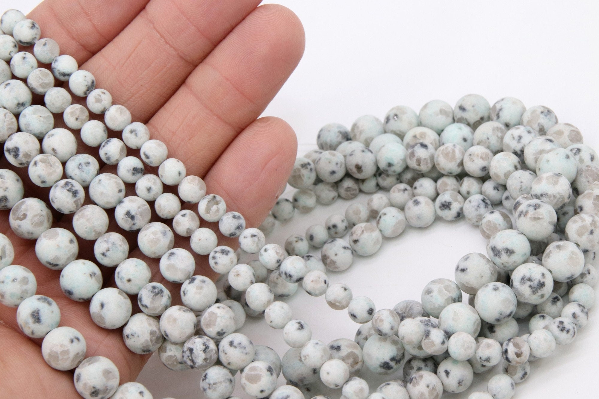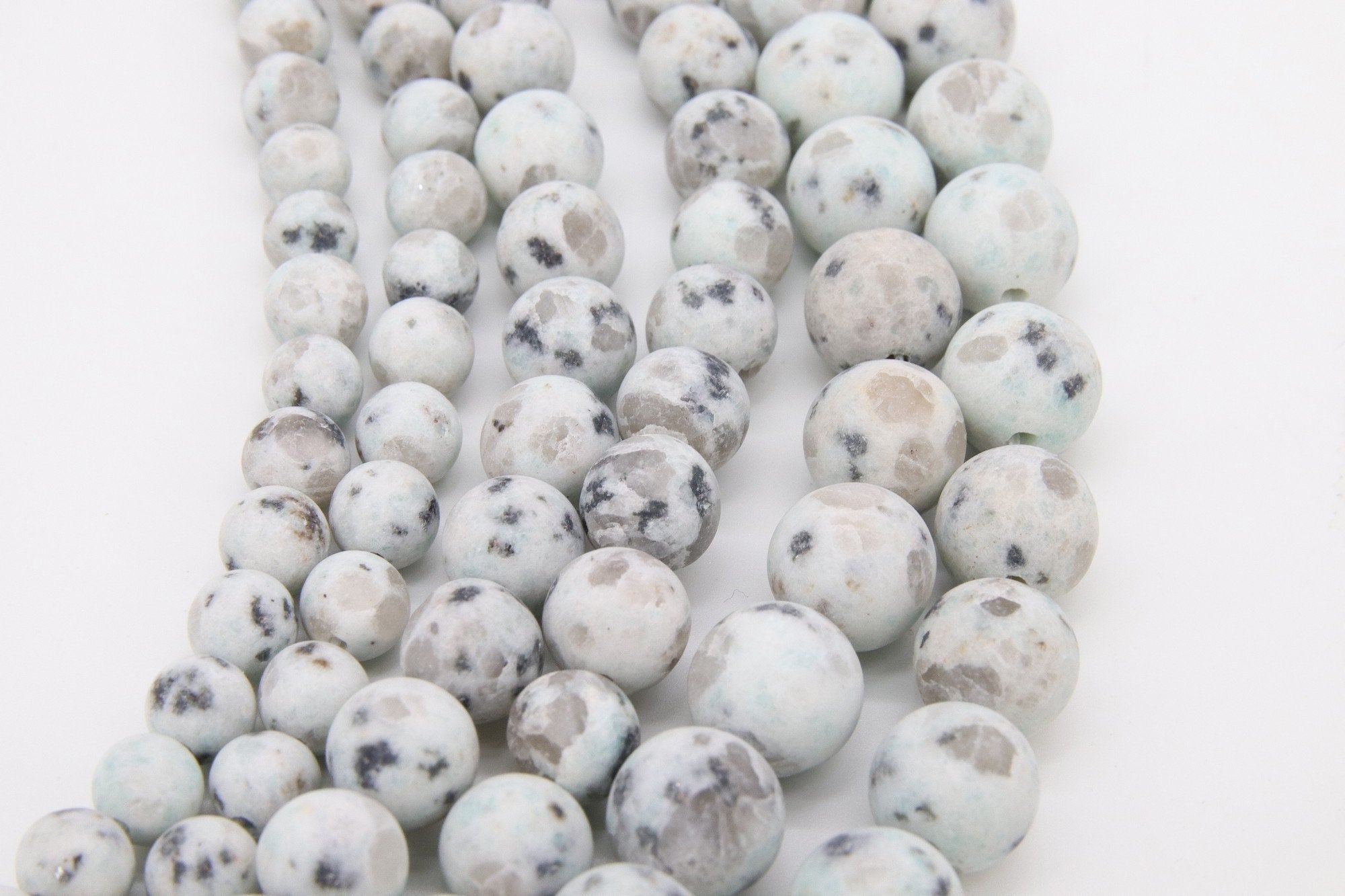 Natural Baby Blue Kiwi Beads, Frosted Sesame Round Blue BS #31, Black Spot Lotus Jasper Beads