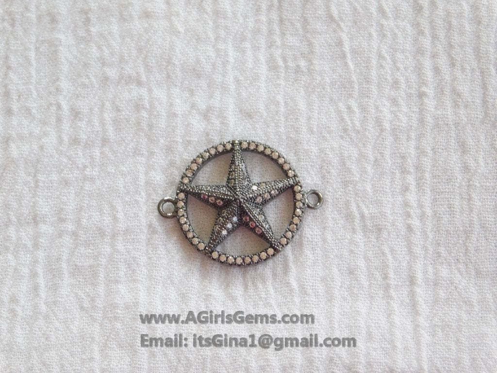 Star Sideways Connector Bead CZ Gunmetal Black Plated Starfish Link Charm Connector Link Pendant Bracelet Necklace AGGSM233